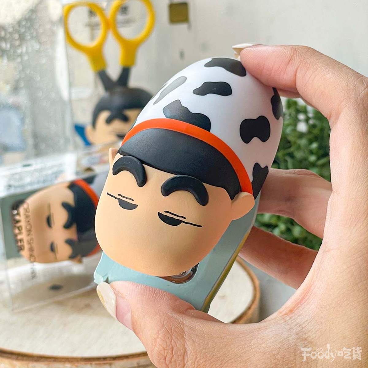 萌萌的小新遠看以為是吊飾,一拉開~結果是捲尺啊!捲尺這種東西老是需要的時候找不到,不然就是要收起來的時候,手滑結果全部散開,但這款完全不會有這個困擾!這整個文具組的樣式都做得太可愛,而且重點是非常實用,在家裡的每個角落都有小新的身影~