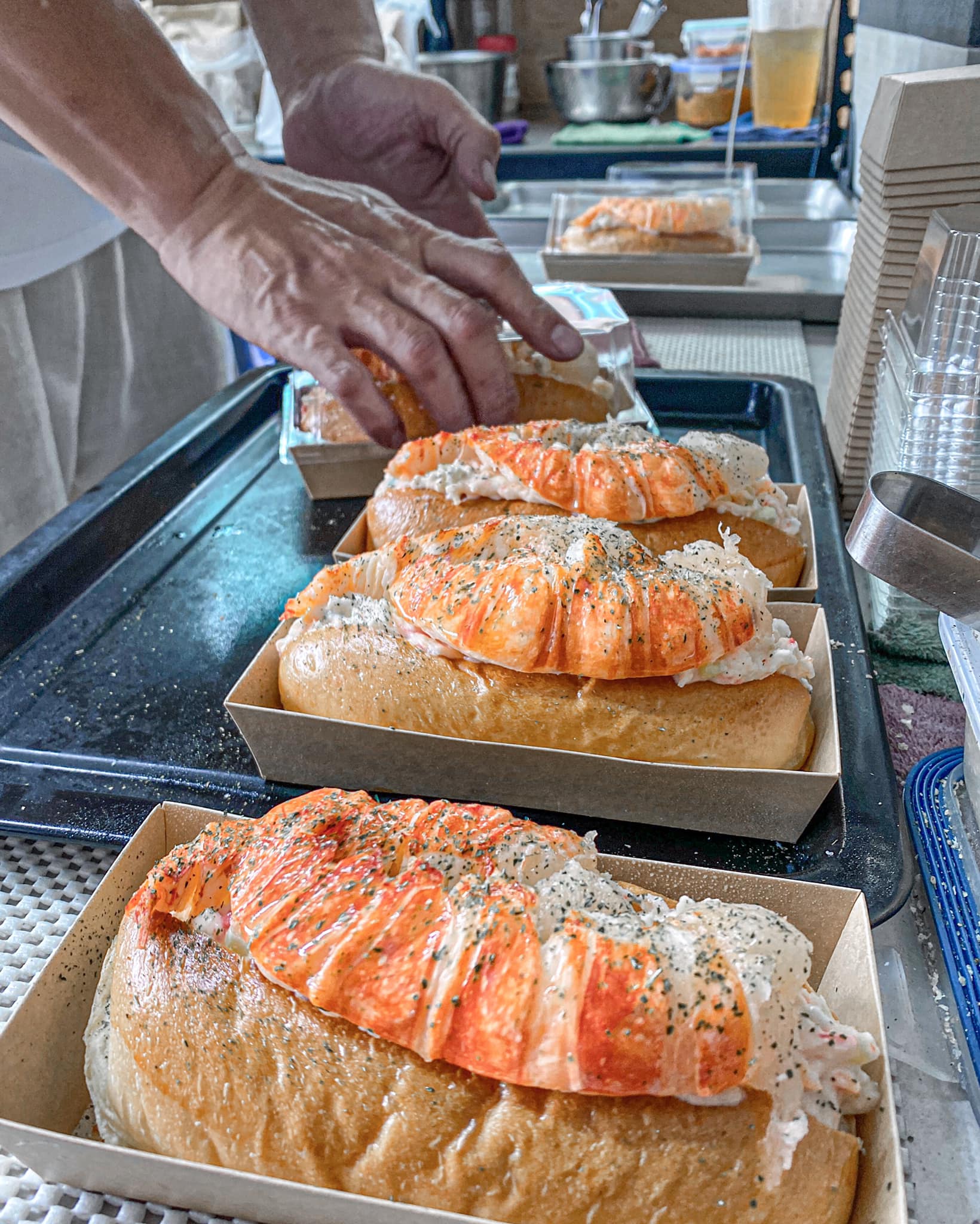 ▼老闆表示,他們從2021年就開始賣「4盎司龍蝦堡」,每日限量,份數沒有一定,要看漁港的供貨量與現場的買賣量。老闆還說,曾經遇過有一位從台北來的客人,專程搭高鐵當天來回,只為了買4個龍蝦堡,「我聽到的時候很驚訝,有必要這麼專程來買?但也覺得自己做的產品可以得到客人這麼堅持的肯定,很高興」。