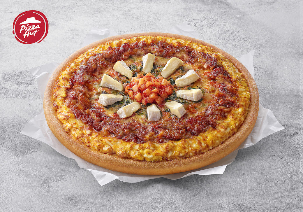 ▼必勝客的「月見韓式烤五花比薩」融合了韓式厚切豬五花肉和法式康門貝爾起司,厚切豬五花肉肉質柔軟,且保留了豐富的彈性,再搭配韓式辣醬,經過烤烘後呈現金黃色澤。配料的韓式醃蘿蔔和菠菜為比薩增添了層次感和清爽度。最令人驚喜的是結合法式「康門貝爾起司」,大塊的起司帶來奶香濃郁的風味,與其他食材完美交融。比薩外層的黃金蛋沙拉口感濃郁滑順,乍看就像一輪柔和的明月,只是會讓人流口水呀!