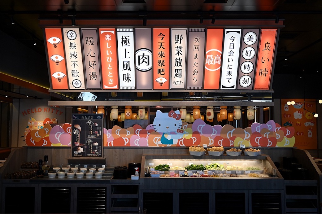 ▼最令人期待的是,全台門店將變成一個真正的Hello Kitty夢幻世界,無論是門口裝飾、自助吧,還是牆面裝飾,都充滿了Hello Kitty的可愛模樣。內用購買雙人瀑布聚系列餐點,即可獲得限量「Hello Kitty幸福聚吉御守」,Kitty坐在火鍋內,保佑你明年平平安安!
