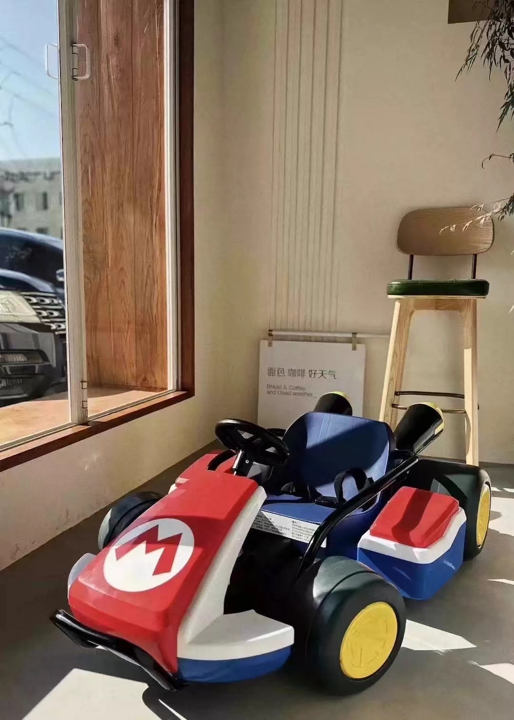 ▼首先來看看這輛「真人版瑪利歐賽車」的尺寸,大小為112*62*34CM,非常適合小朋友坐上去。當然,如果你自己想試一下也沒問題,畢竟誰不想重返童年,在現實中體驗「瑪利歐賽車」遊戲呢?