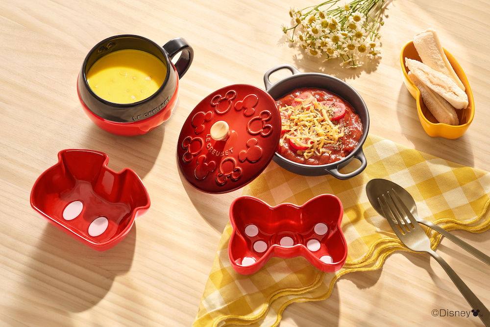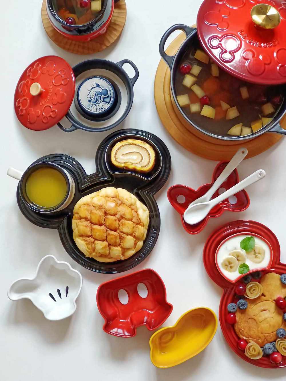 ▼喜歡下廚的朋朋也有福了!迪士尼與法國LE CREUSET推出聯名的造型鐵鍋和餐具。當華麗的法國手工遇上童話中的魔法,真的太美太夢幻!其中備受矚目的就是迪士尼米奇系列造型餐桌用具套組,餐盤做成米奇大頭的形狀,還附上杯具跟小碗,盛裝點心五告勾錐,還有迷你醬料碟做成米奇褲子、手套、米妮蝴蝶結等圖樣,絕對能妝點餐桌!