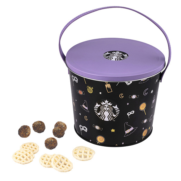 ▼「星巴克雙饗派對桶」絕對不能錯過!繽紛可愛的萬聖派對提桶,內含新上市甜口味焦糖可可風味爆米花和經典鹹口味松露海鹽星格脆,絕對是大小朋友都喜愛的零食桶。以躲貓貓主題插畫設計的「萬聖提袋禮」,內含兩種進口造型棉花糖,小朋友在萬聖節時可以帶著帆布提袋出門要糖果,平時也能當運動盥洗包或便當袋,超級實用。