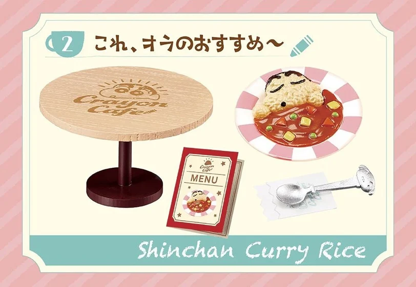 ▼第二套則是「小新咖哩飯」,配上菜單、咖啡廳桌椅和小白餐具。