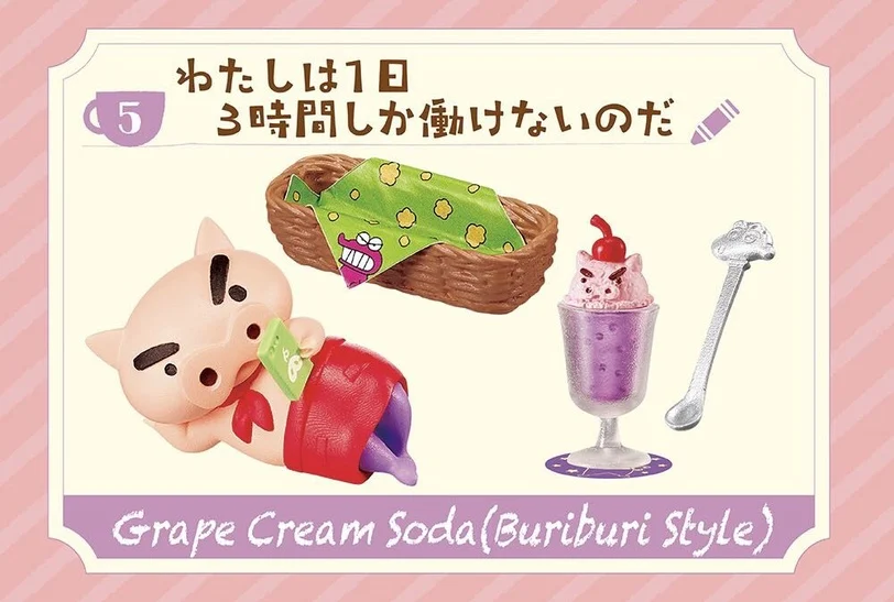 ▼第五套「葡萄冰淋淇汽水」內含肥嘟嘟左衛門、餐盒、醬料、葡萄冰淋淇汽水、小新湯匙。
