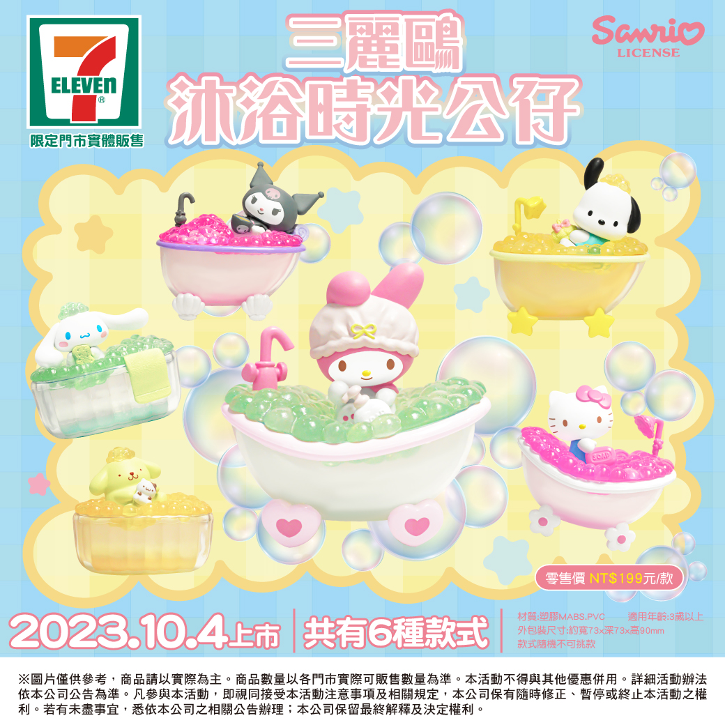 2023年10月11日三麗鷗的粉絲們,是時候跟你的小金庫說拜拜啦!7-11又推出一系列全新的三麗鷗周邊,竟然是超可愛的「三麗鷗沐浴時光公仔」!你以為三麗鷗家族只在你的書包、筆盒、或者T恤上賣萌?不,這次他們化身可愛公仔,繼續向你展現萌力~