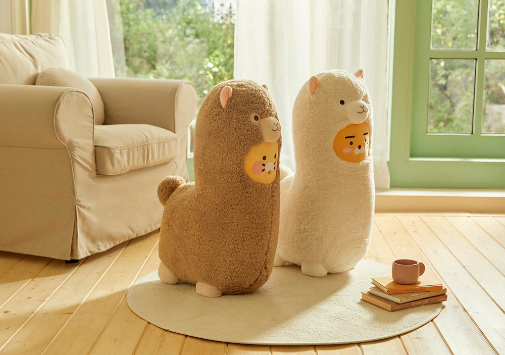 ▼如果你之前有夢想要養一隻羊駝,這兩位小傢伙絕對是入門的好選擇。萊恩和春植保證,不需要你餵食也不會亂叫,只需要你的愛!這麼療癒的抱枕,售價只要49,000韓元(大約1168台幣),現在已經在KAKAOFRIENDS官網開賣啦!考慮半天的話,很可能就被其他粉絲給搶空了,動作要快喔!