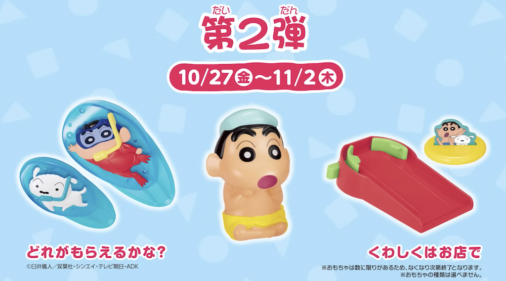 ▼無論你是喜歡小新的調皮還是想要探險的粉絲,這次的兒童餐玩具都不容錯過。而第三彈的玩具將於11月3日公開,敬請期待!
