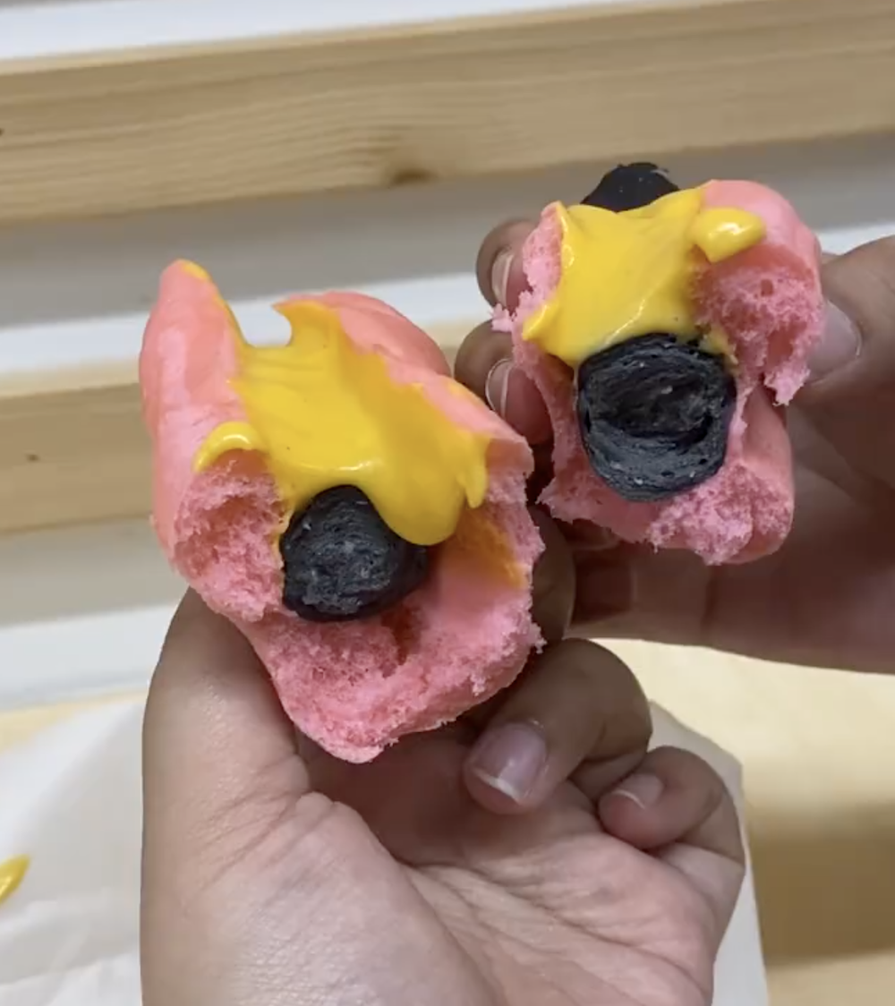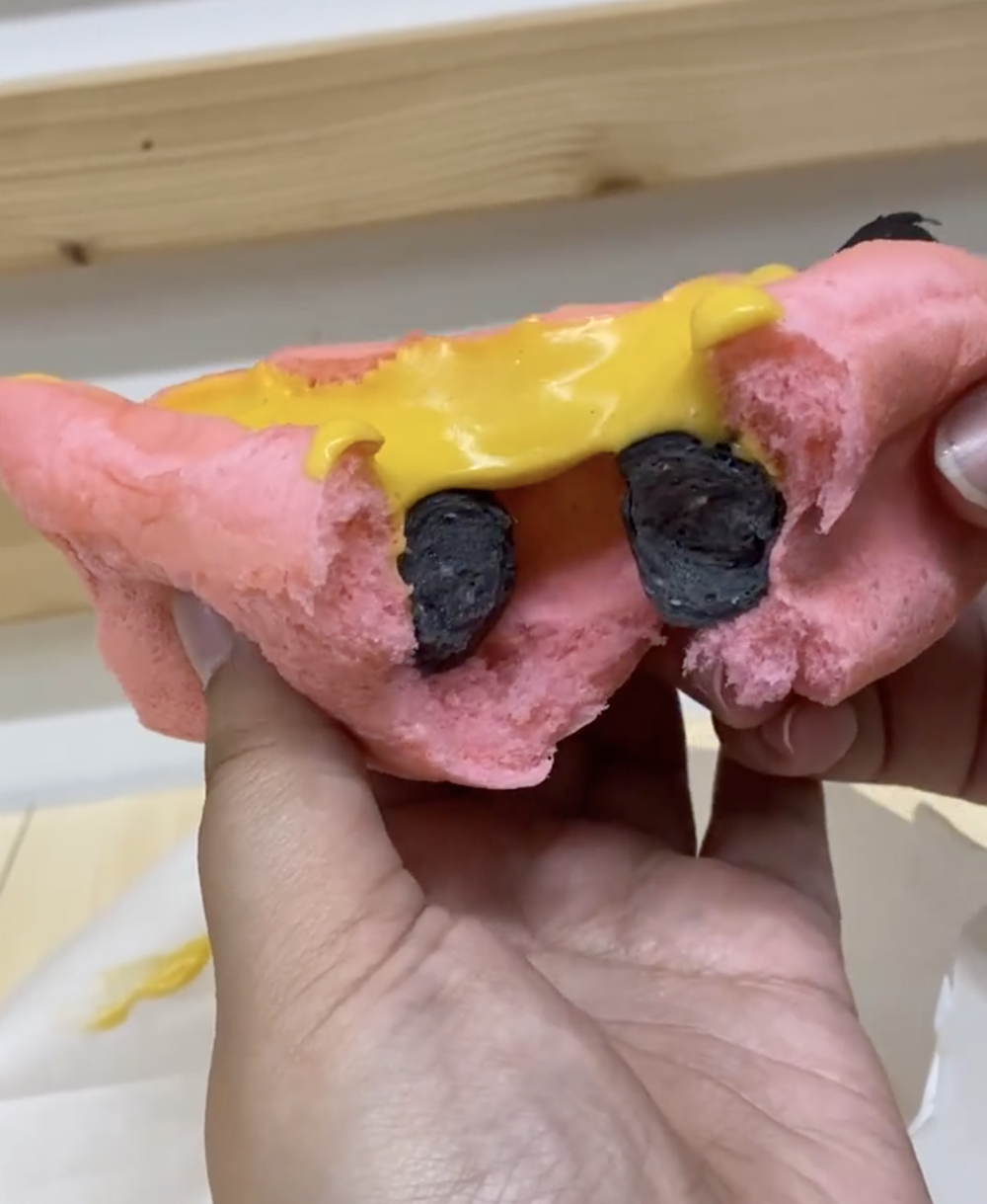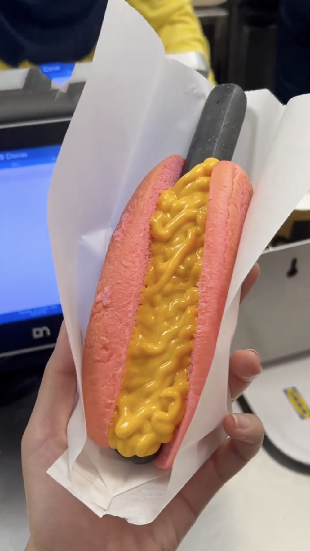▼馬來西亞IKEA推出的這款熱狗配色非常獨特,簡直就像是BLACKPINK的音樂走進了你的餐盤。它的賣相看起來很「奇特」,但一咬下去就會驚喜連連。粉紅色麵包外層鬆軟,黑色竹炭香腸味道偏淡,不過最大的驚喜還是來自超濃郁的起司醬,一口咬下去口感豐富,層次感十足。