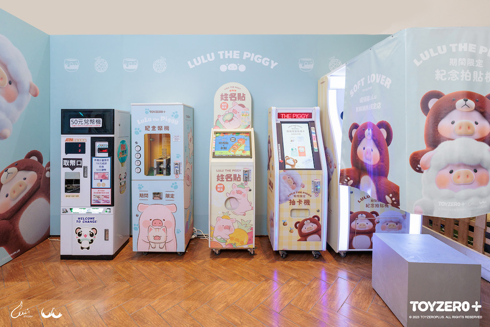 ▼快閃店中還有14款LuLu豬歷年系列盲盒、週邊,超過140項產品,以及全新豬熊&豬羊主題的「姓名貼機」、「抽卡機」、「壓幣機」、「拍貼機」,超大扭蛋機一抽只要NTD 300,讓粉絲們一次就能收齊新品與經典週邊。