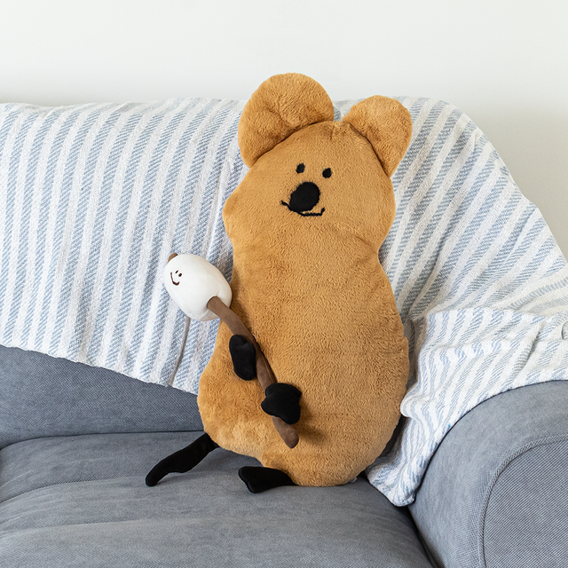 ▼「短尾矮袋鼠Quokka烤棉花糖玩偶」也萌到不行!這款玩偶足足有32公分,觸感柔軟,超級蓬鬆,讓人好想抱緊處理!平時可以將它作為裝飾品放在家中、車上或辦公桌上,還可以作為互動玩具,烤棉花糖的場景設計也讓人想到戶外露營和與朋友的美好時光。