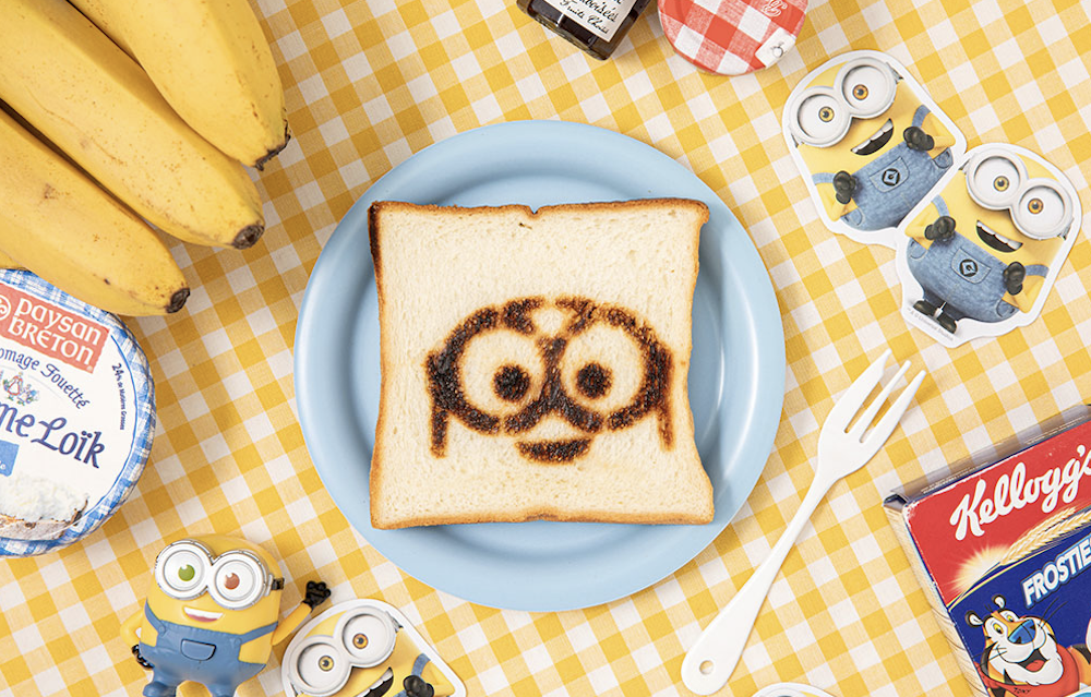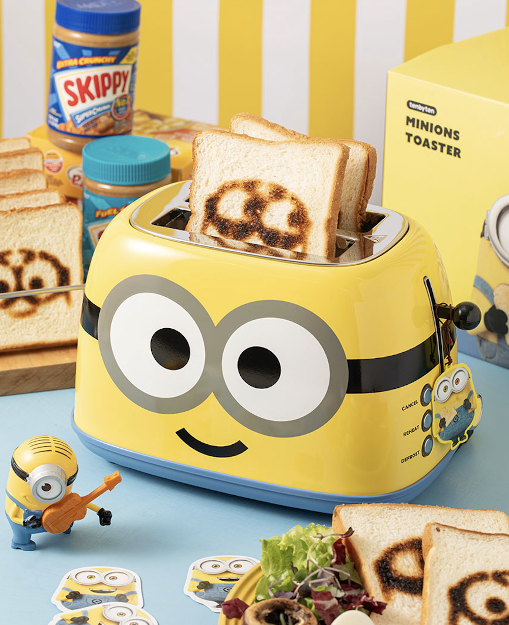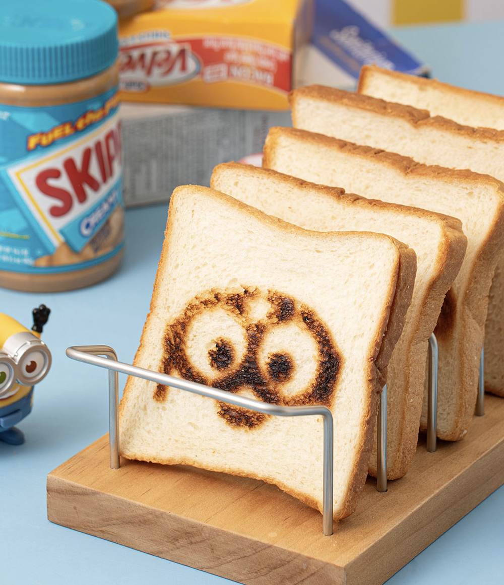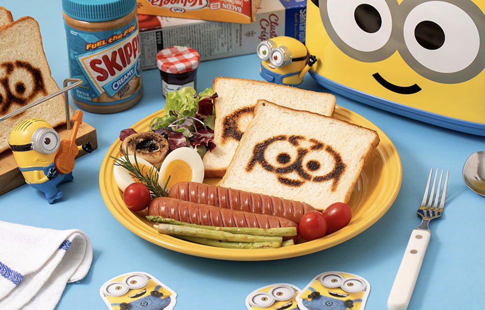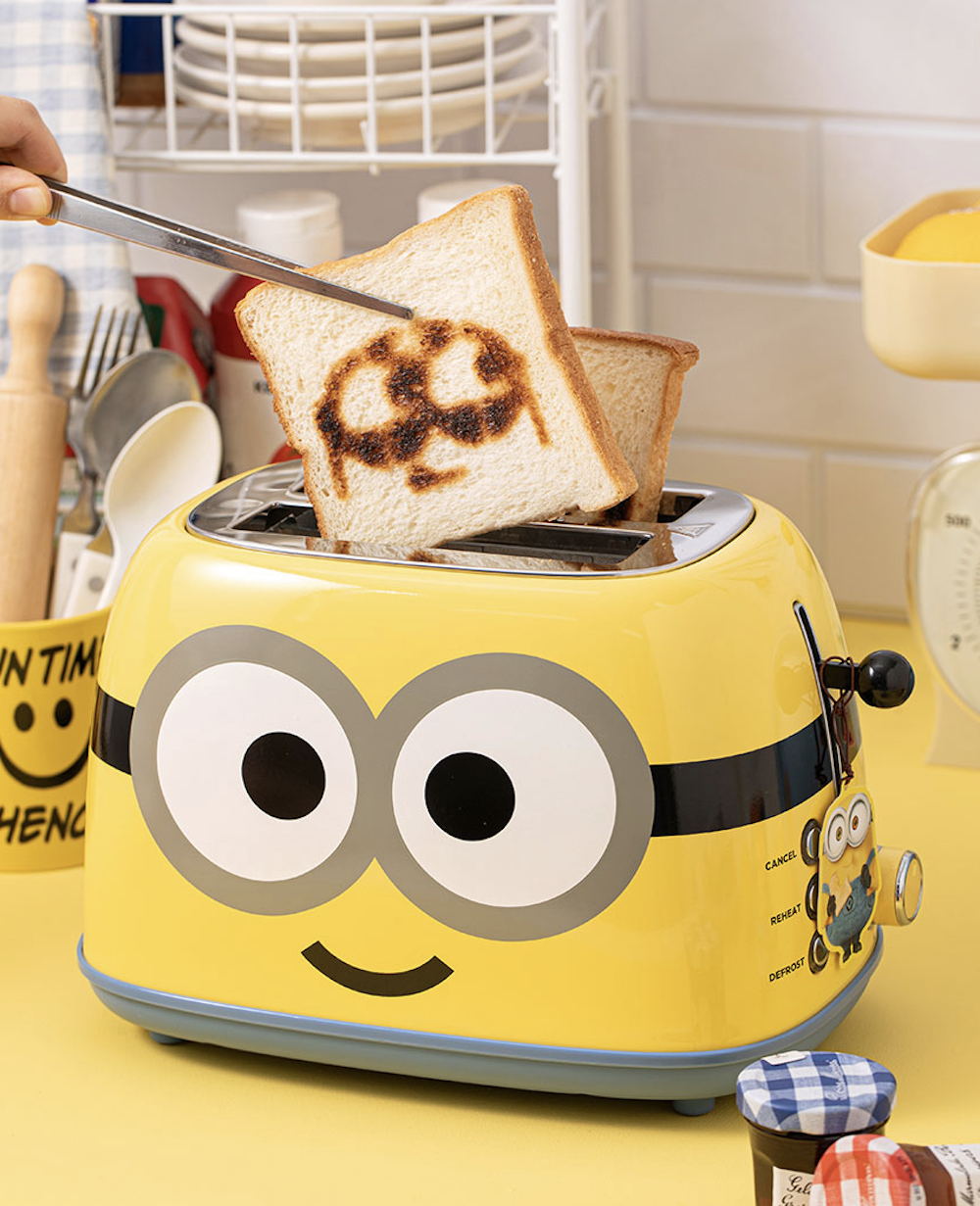 ▼「Minions小小兵烤吐司機」烤出的不是普通的金黃吐司,而是有著Bob小小兵超萌圖案的吐司!是的,這不是開玩笑,你現在可以一邊咬下美味的吐司,一邊與Bob小小兵共度美好的早晨。