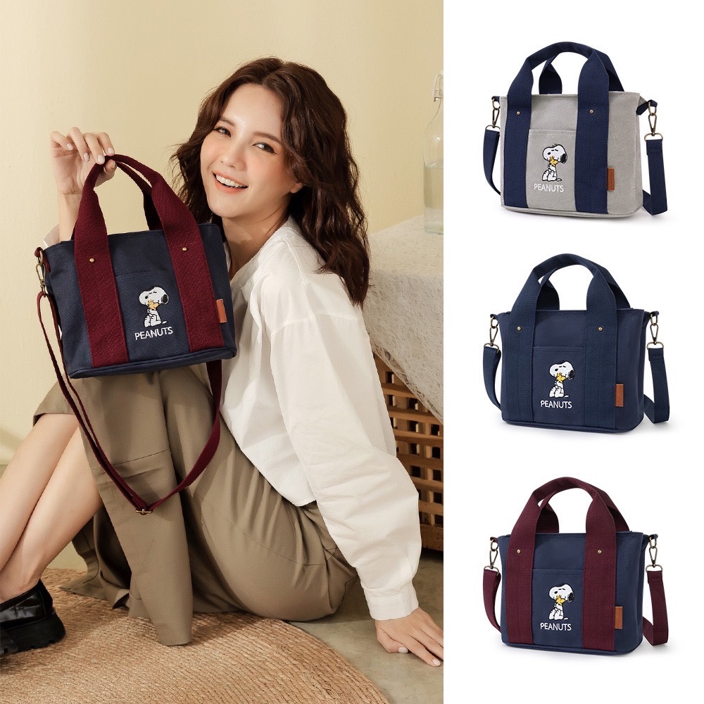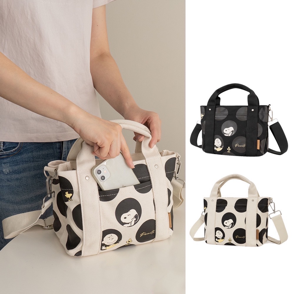 ▼日常通勤小包也有選擇!史努比跟Kiwi O攜手推出多層托特包,可斜背可手提,除了點點款也有素色款。帆布材質不僅耐用,裡面的隔層也是多~到不行,很適合平常帶許多小東東出門的人盛裝。最重要的當然還是包上的史努比刺繡,實在太古錐啦!