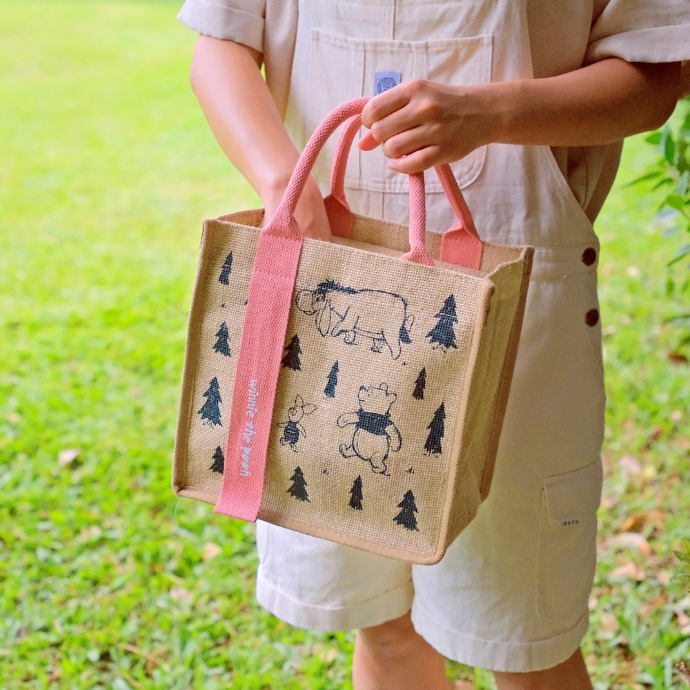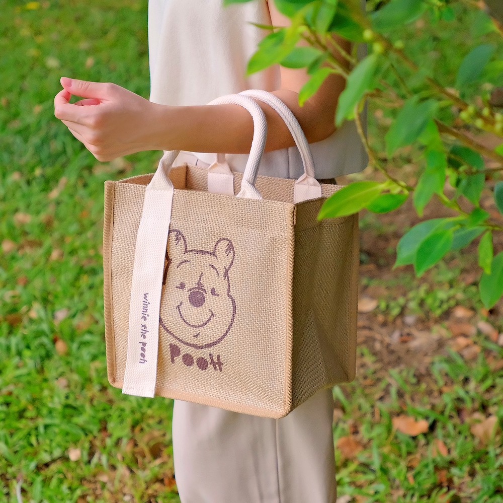 ▼還有迪士尼粉絲也別錯過!小熊維尼亞麻保溫提袋根本是外出野餐、露營必備啊!內裏有鋁膜材質,清理不會麻煩,正面除了小熊維尼圖樣,還搭配造型織帶特色設計,袋口更附拉鍊,裝東西也不怕掉出喔!提在手上保證詢問度超高!