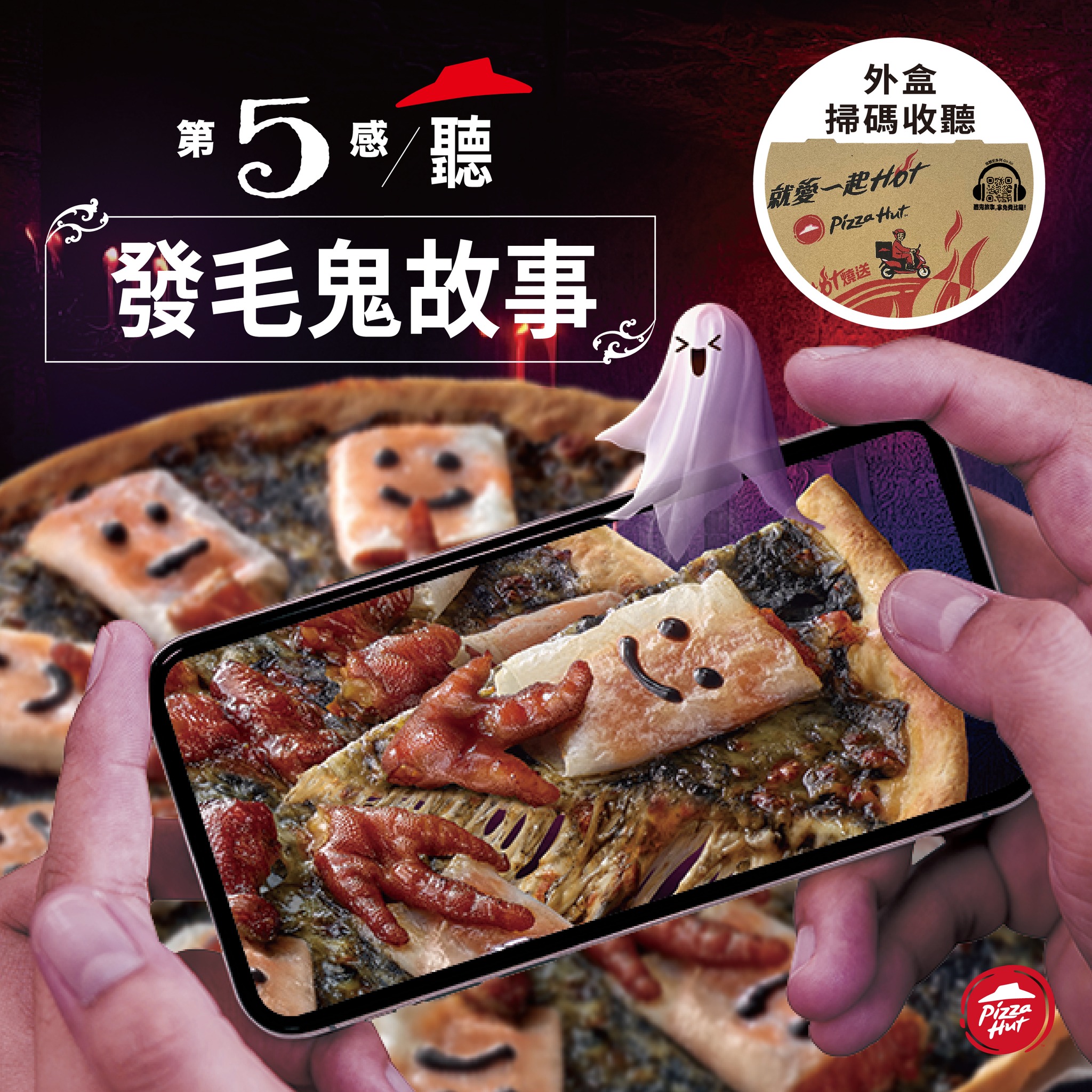 ▼更令人興奮的是,這是必勝客首次創造的「五感體驗」比薩喔!那就是這款比薩居然會說故事啊!必勝客與Podcaster合作,只需購買「幽靈腸粉鳳爪比薩」,使用手機掃描紙盒上的QR Code,上傳比薩的照片,就能獨家聽到Podcaster「偷聽史多利」分享的鬼故事。你還可以分享活動資訊到Facebook,有機會抽中必勝客大比薩兌換券!邊吃比薩邊聽「偷聽史多利」的鬼故事,節慶氛圍真的滿~到不行耶!