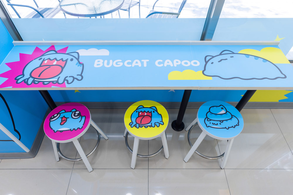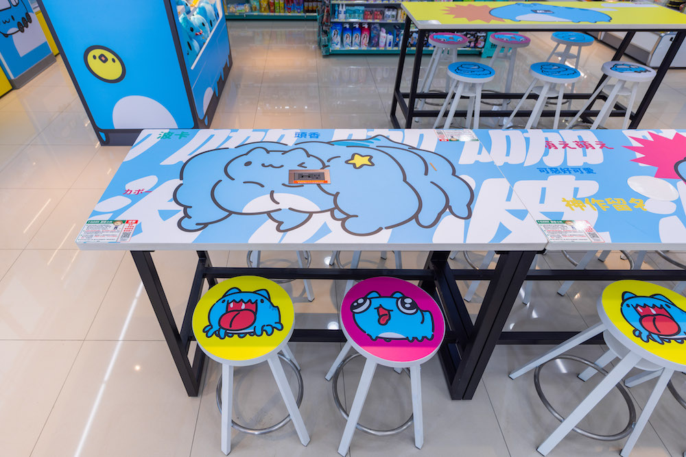 ▼一踏進門市,你會發現處處都是奇怪咖波的足跡。桌面、座椅、天花板,就連廁所內也充滿了咖波的圖像,這裡處處都是驚喜!各種奇形怪狀的咖波,真的拍不完耶~