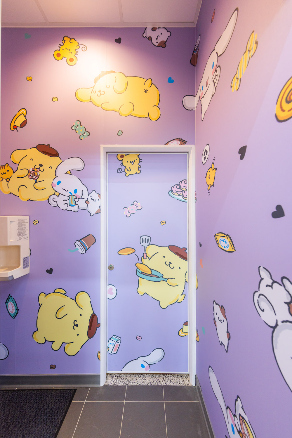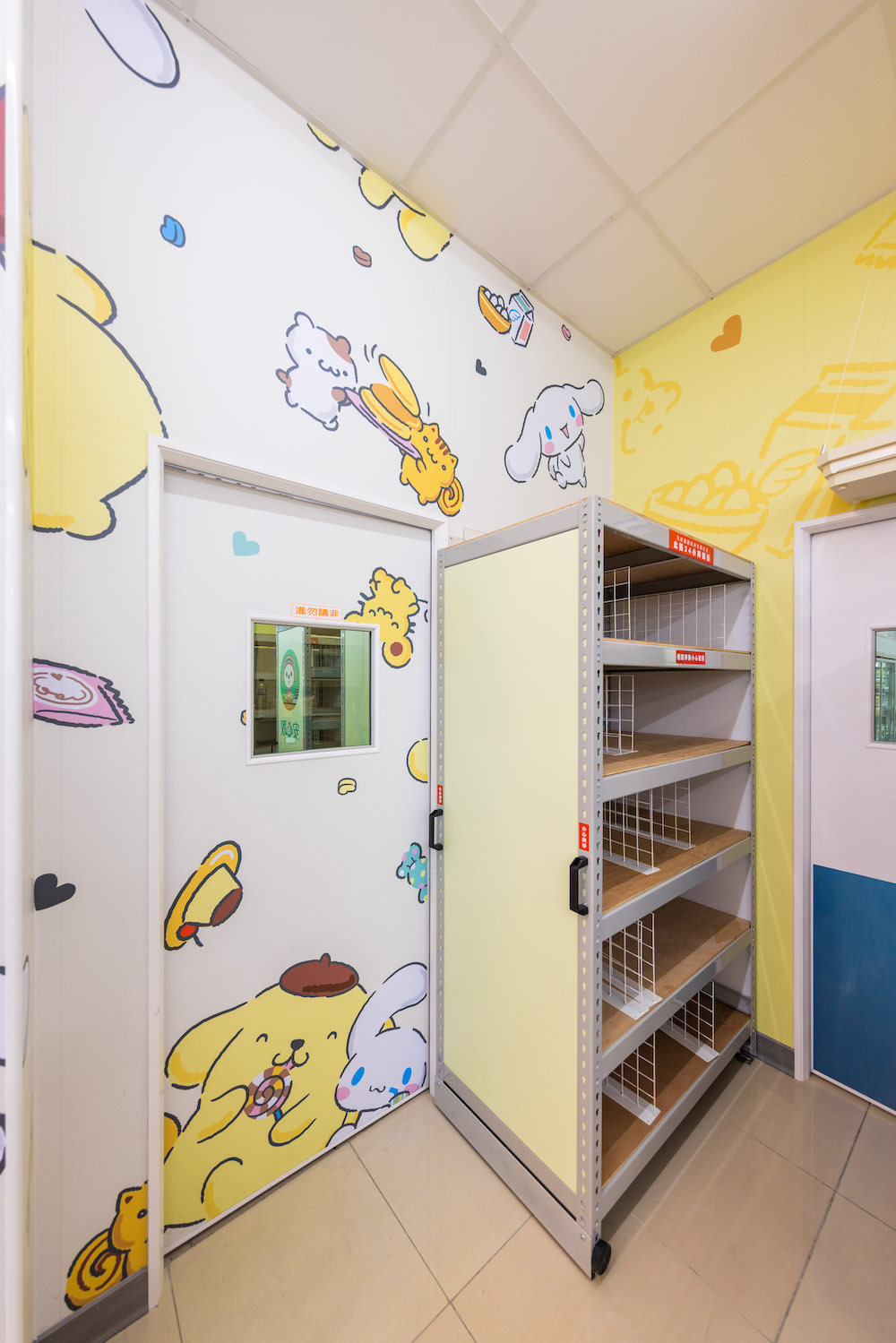 ▼門市裡頭,更是萌萌的甜點世界,不管是粉紫的牆面還是萌翻的布丁狗和大耳狗喜拿大師製作甜點的圖案,一切都彷彿在說:「快來和我們一起享受甜蜜的午後時光吧!」