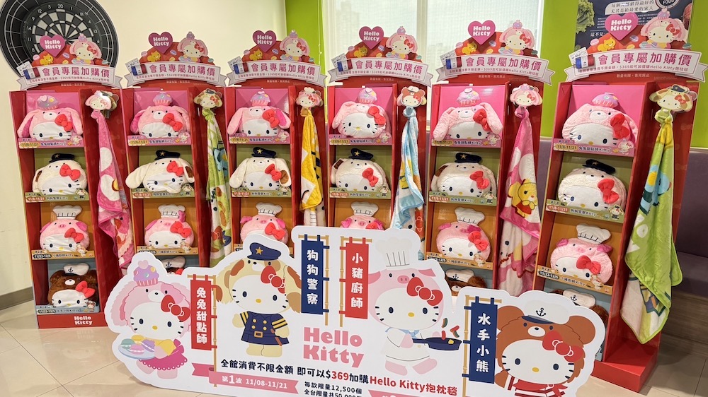 ▼想要入手Kitty的辦法也超簡單,從11月8日開始到12月5日,在全台家樂福量販/超市分店/線上購物消費,全館不限金額,就可以輕鬆以369元的特價入手這些可愛的抱枕毯!但要注意,全款式全台限量50000個,所以如果你想要收藏,千萬別猶豫,趕快行動吧!