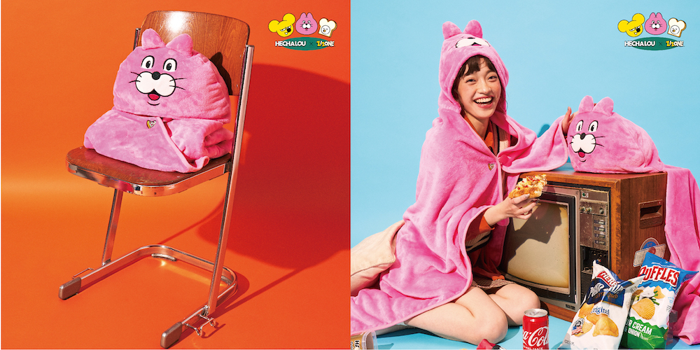 ▼「連帽毛毯」絕對是冬季宅家追劇的好夥伴啊~不分尺寸人人都可披戴!柔軟觸感披上就不想拿下來,疊在一起時也會變成粉紅貓Pingo的模樣,就好像他在家裡陪你一樣!