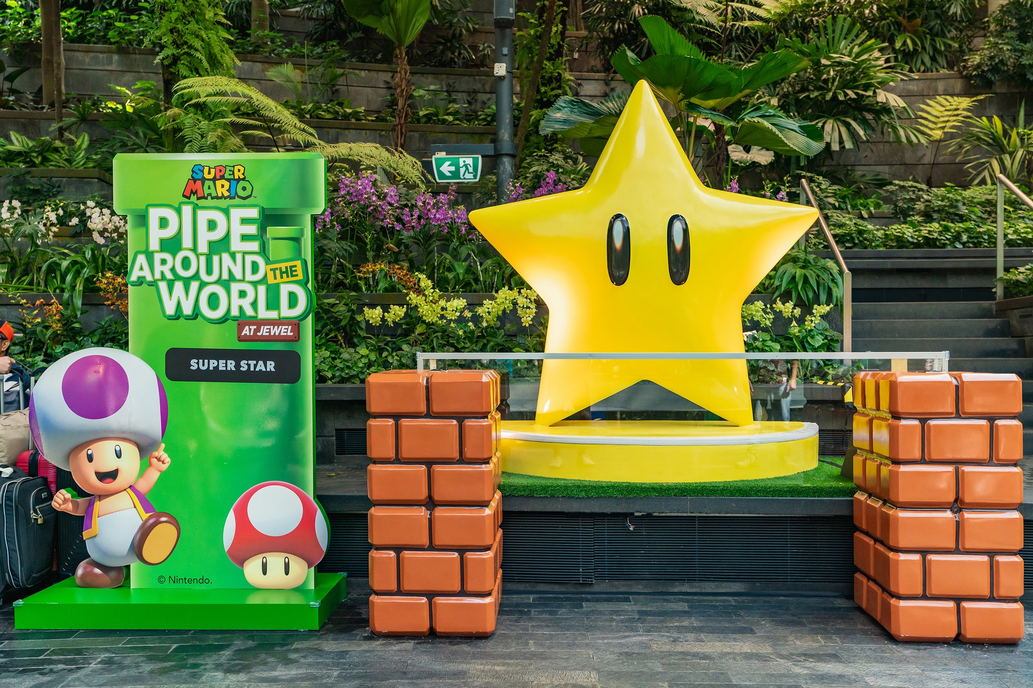 【海外】5米高水管必打卡! 樟宜機場「瑪利歐主題活動」開跑 問號磚塊、超級蘑菇、無敵星都現身