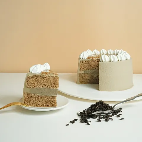 ▼這款戚風蛋糕的外觀也非常吸引人。蛋糕表面覆蓋著香醇的焙烏龍鮮奶油,柔軟綿密,每一口都能品嘗到濃郁的茶香。驚喜還不止於此!蛋糕的中間層藏著一個秘密-甜點師傅手工製作的烏龍茶奶凍。這層奶凍不僅增加了蛋糕的口感層次,還帶來了一股清新的茶香。