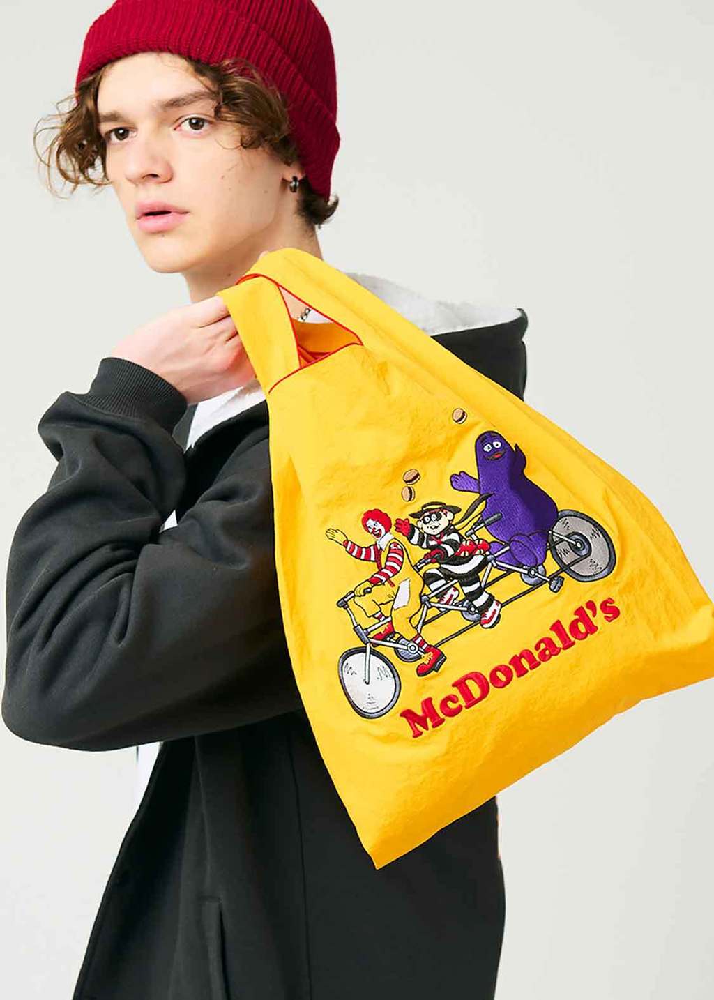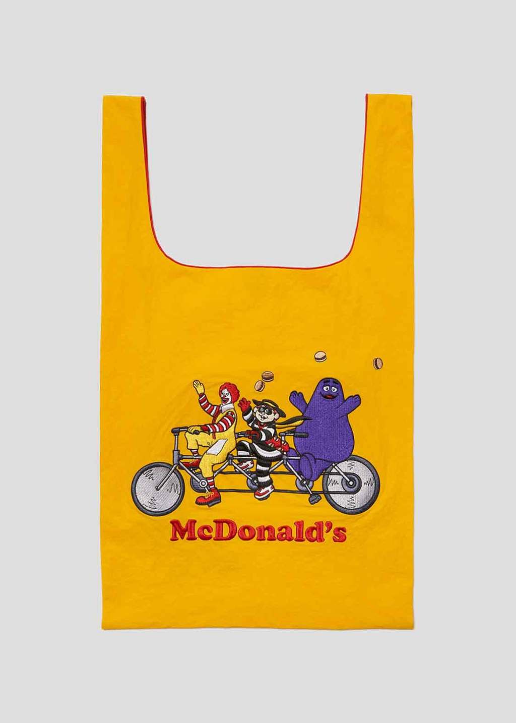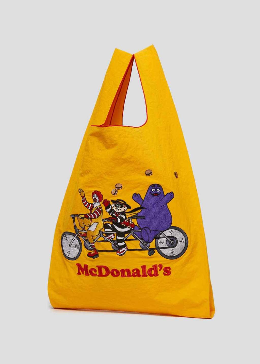 ▼除此之外,另一款「麥當勞角色購物袋」也很吸睛,同樣以厚尼龍材質製成,購物袋上印有熟悉的麥當勞角色,如麥當勞叔叔、漢堡神偷和奶昔大哥一起騎自行車的圖案,為日常生活增添一份歡樂與童趣。