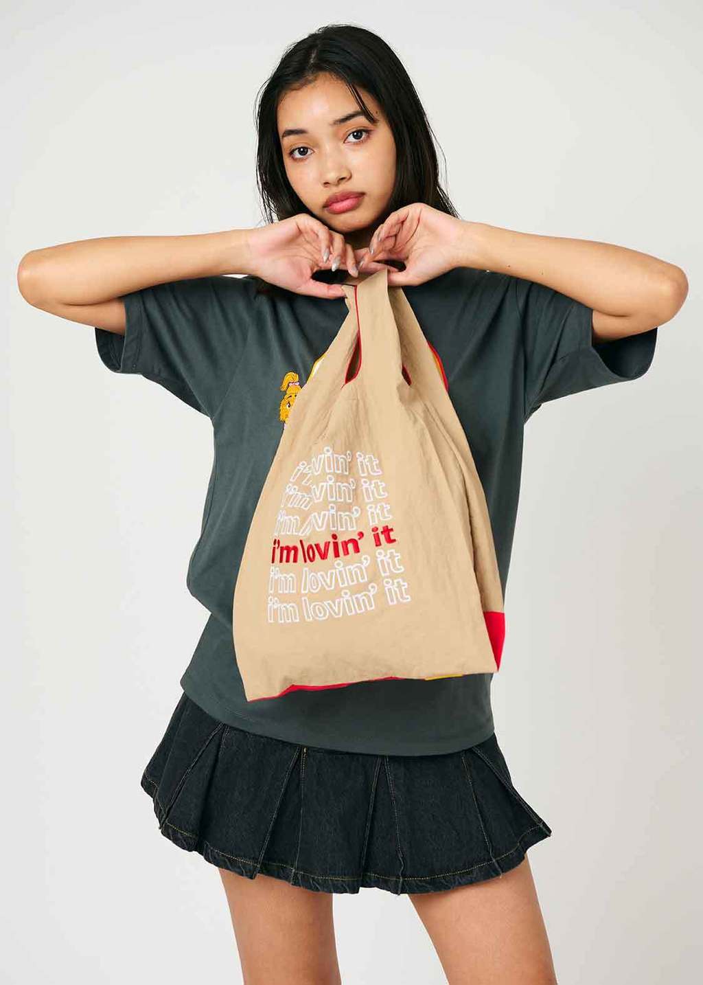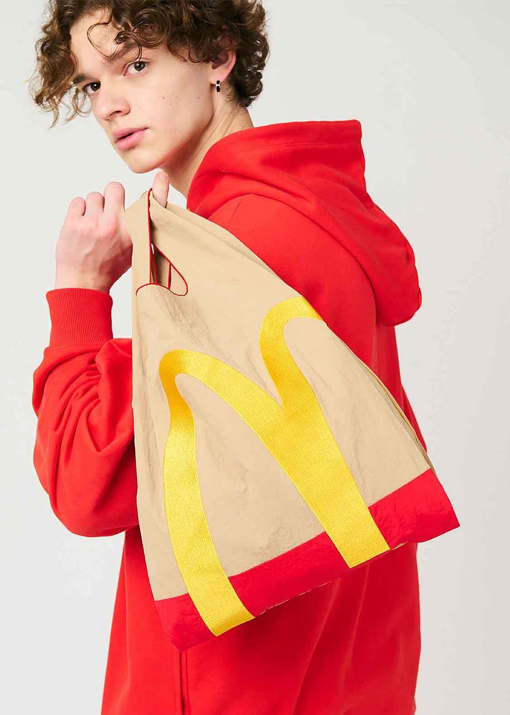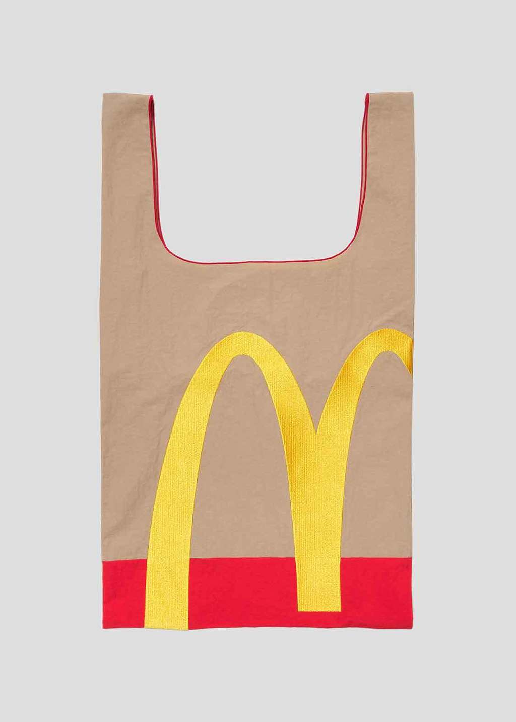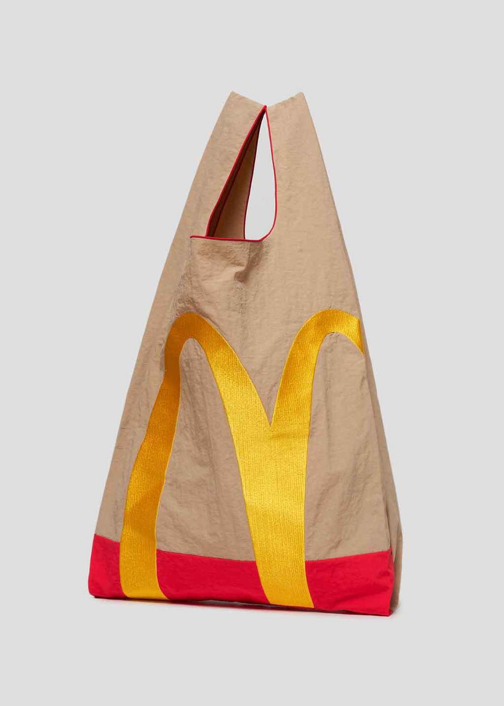▼這款「紙袋造型購物袋」的設計靈感源自麥當勞經典的咖啡色紙袋。袋子的正面繡有麥當勞標誌性的金色拱門圖案,背面則繡有全球所有麥當勞餐廳通用的宣傳語「i’m lovin' it」。這樣的設計不僅讓人一眼就能聯想到麥當勞,更增添了一絲時尚與趣味。