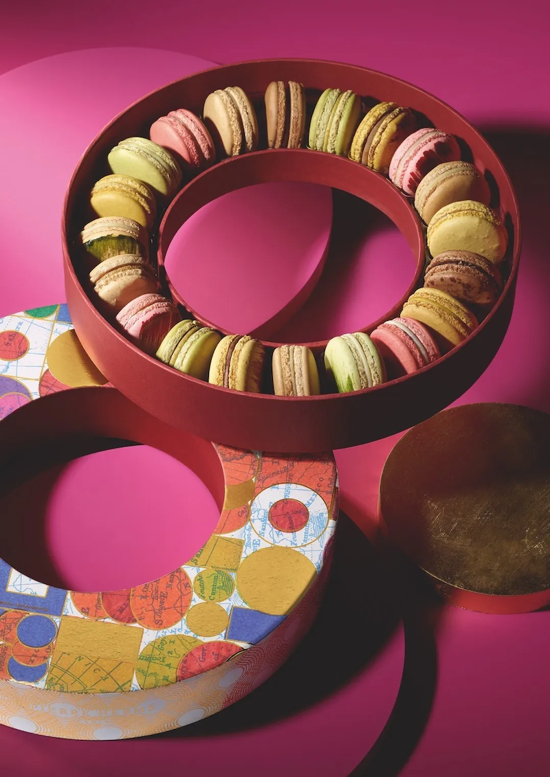 ▼年末想要選購禮盒也非常推薦選擇,快閃店販售僅有聖誕節慶限定的「FLEUR D’AGRUME茉莉葡萄柚馬卡龍」以及「ARYA橙花開心果馬卡龍」口味!節慶禮盒由義大利視覺藝術家Gianpaolo Pagni打造,他曾為愛馬仕繪製絲巾圖樣。快閃店還有手工製巧克力等必嚐美點,讓我們一同準備好迎接這場馬卡龍盛宴吧!