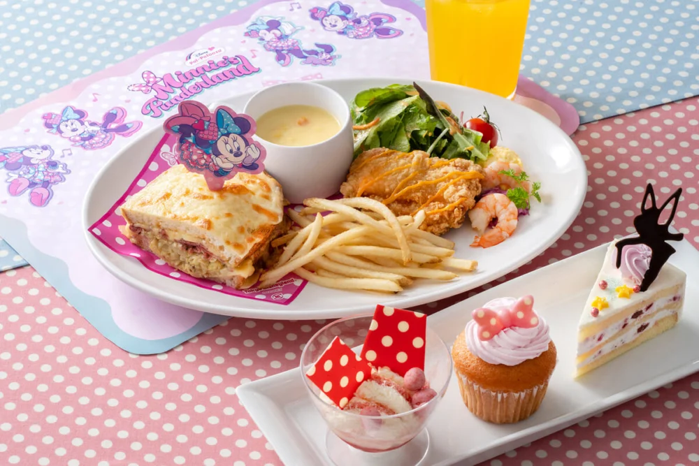 ▼在這裡,你不僅可以享受到各式以米妮為靈感的期間限定商品,比如精緻的髮飾、美味的零食、可愛的鐵盒餅乾和玩偶等等,還可以在西部樂園廣場樓閣餐廳品嚐到特製的米妮主題套餐和令人垂涎的限定甜點。
