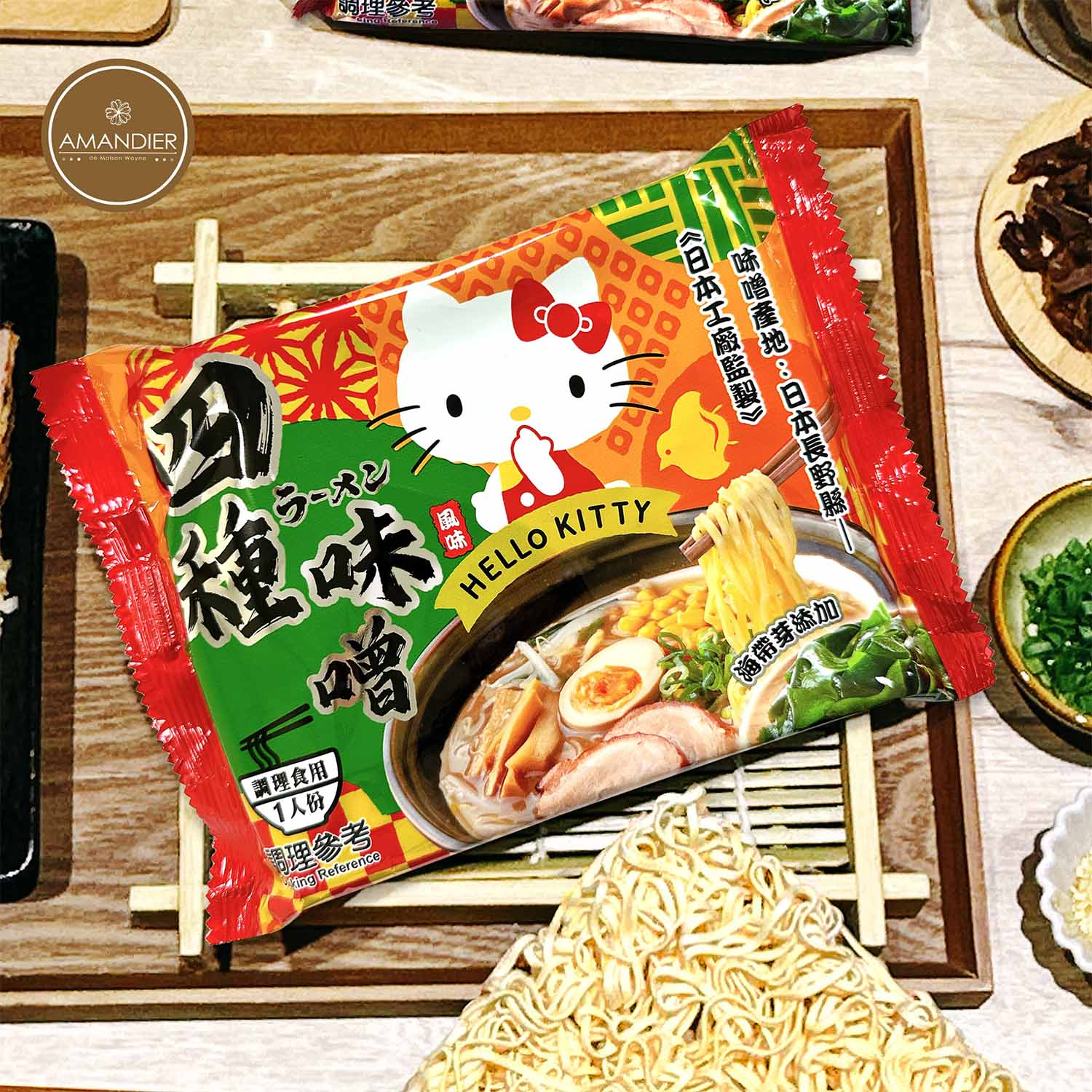 ▼四種味噌拉麵則以濃郁的味噌湯頭為特色,每一口都能品嚐到多層次的味噌精華,同樣搭配Q彈麵條,讓人一吃就愛上。不管是哪款外包裝的Kitty都超級可愛,光是煮麵也有好心情~