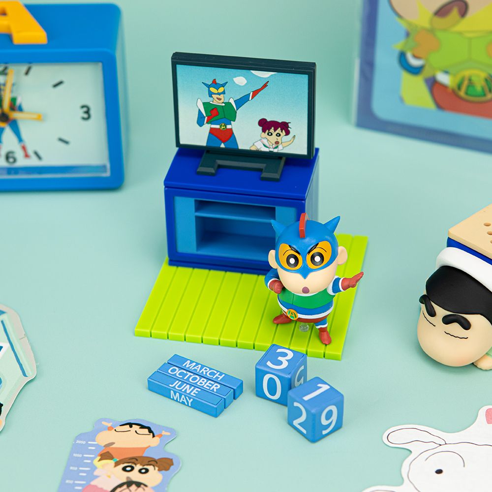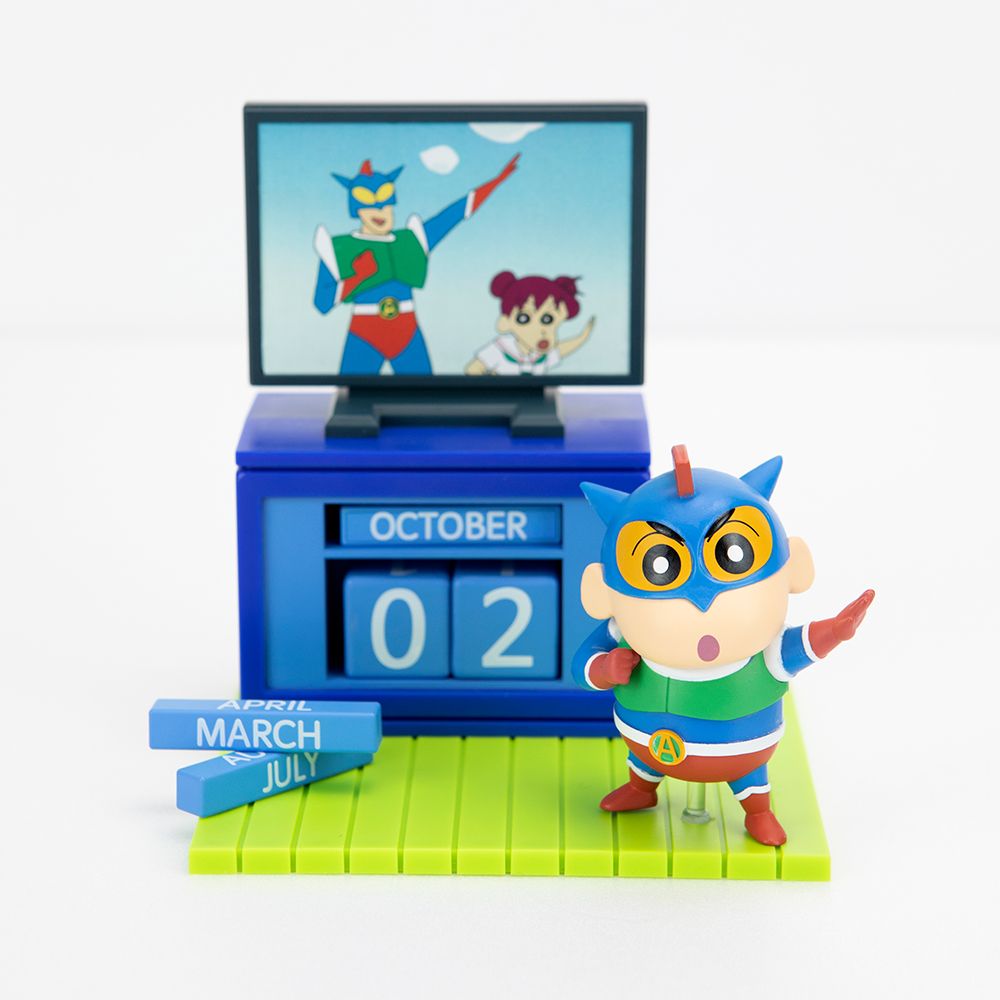 ▼讓我們來看看這款萬年曆的外觀,真的發出尖叫啦~它的尺寸約為10公分高,非常適合擺在辦公桌或家中的小角落。而且,它不僅僅是一個普通的萬年曆喔!而是一個將小新變身成動感超人的迷人場景,還原小新家的客廳,整體造型萌到不行!