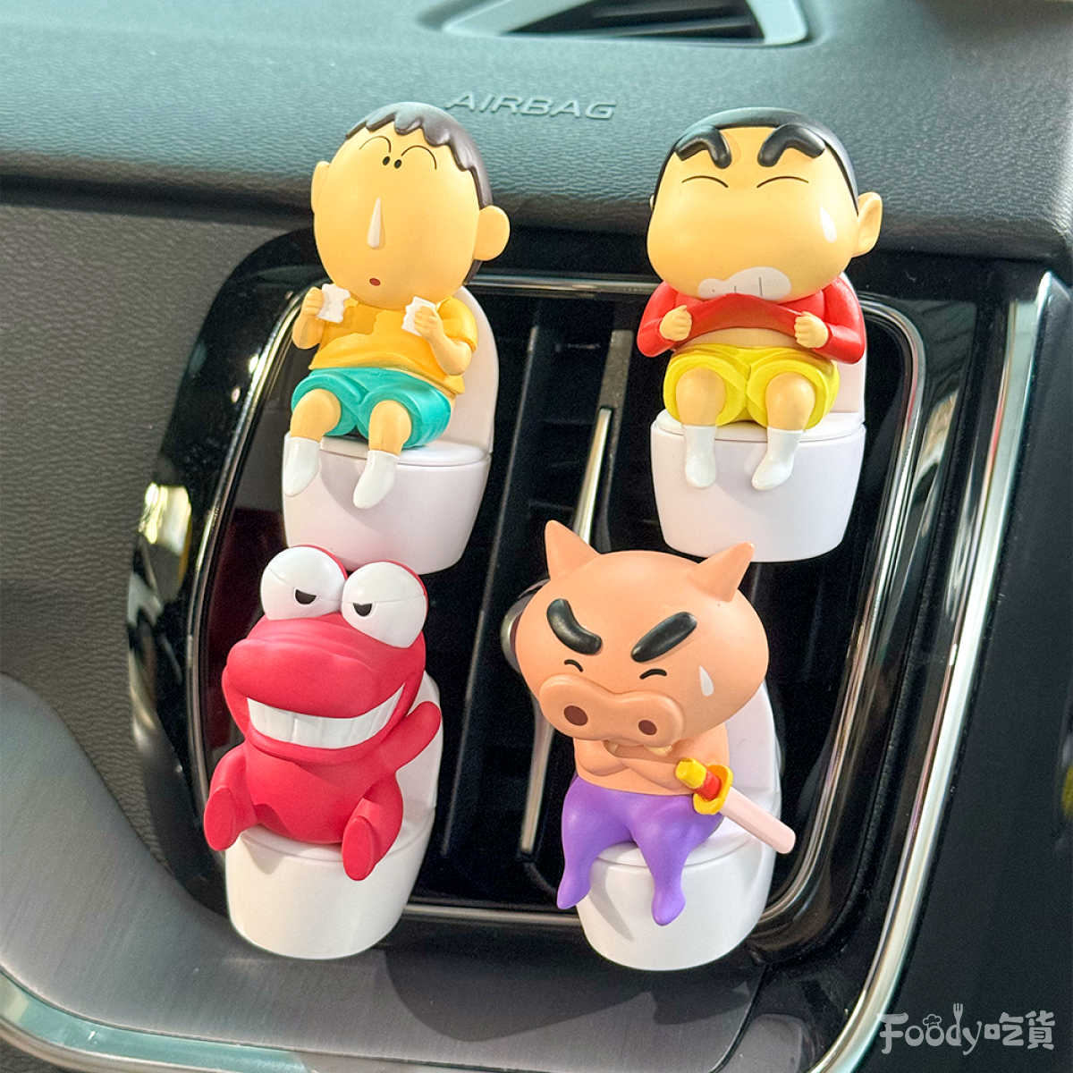 ▼首先來看看「蠟筆小新系列車載香薰擺件」。想像一下,小新、阿呆、不理不理左衛門、鱷魚山先生這幾位角色,都坐在馬桶上,是不是超級搞笑?只要掀開馬桶蓋,放入香片,再插入車內的空調夾層,香氣四溢,開車時心情也會愉悅不少!