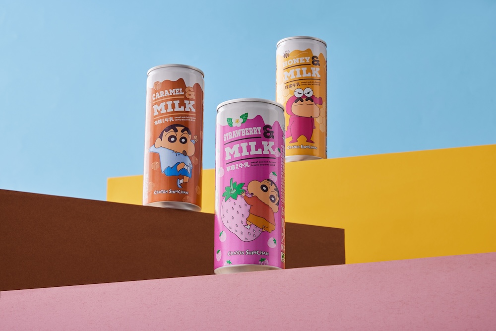 【Hello Kitty 草莓綜合果茶、蠟筆小新草莓煉乳牛乳】