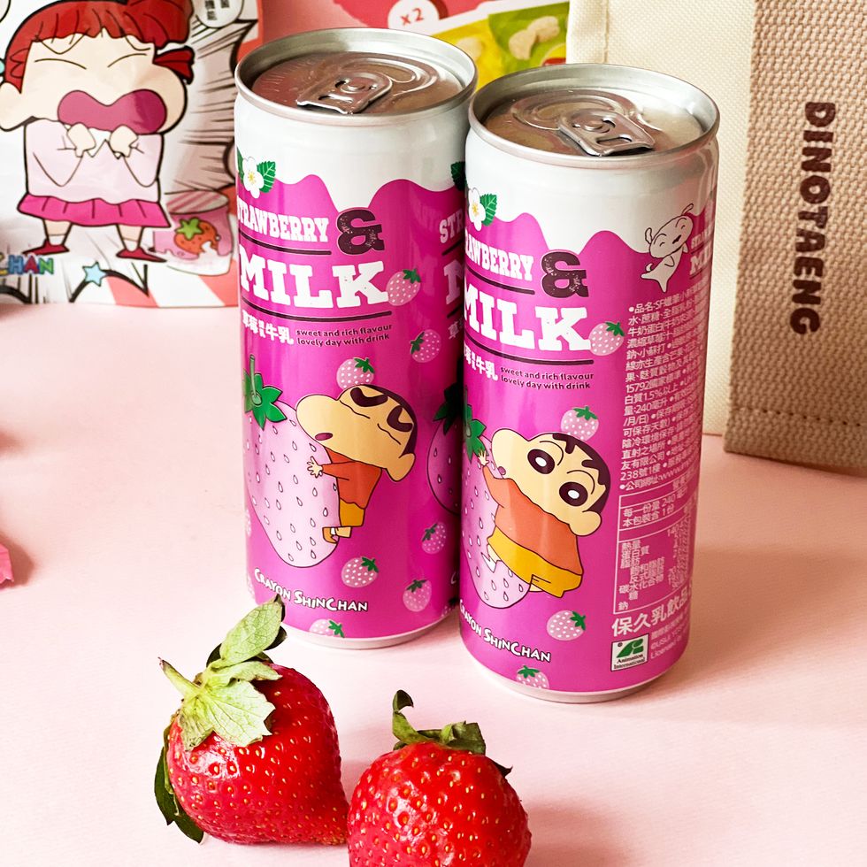 ▼接下來是同樣受歡迎的「蠟筆小新草莓煉乳牛乳」。在之前推出的蜂蜜風味和焦糖風味蠟筆小新鐵罐牛乳系列大獲好評後,這次7-11特別為草莓季帶來了全新風味,外包裝也是延續可愛的小新,抱在草莓上真的好童趣!