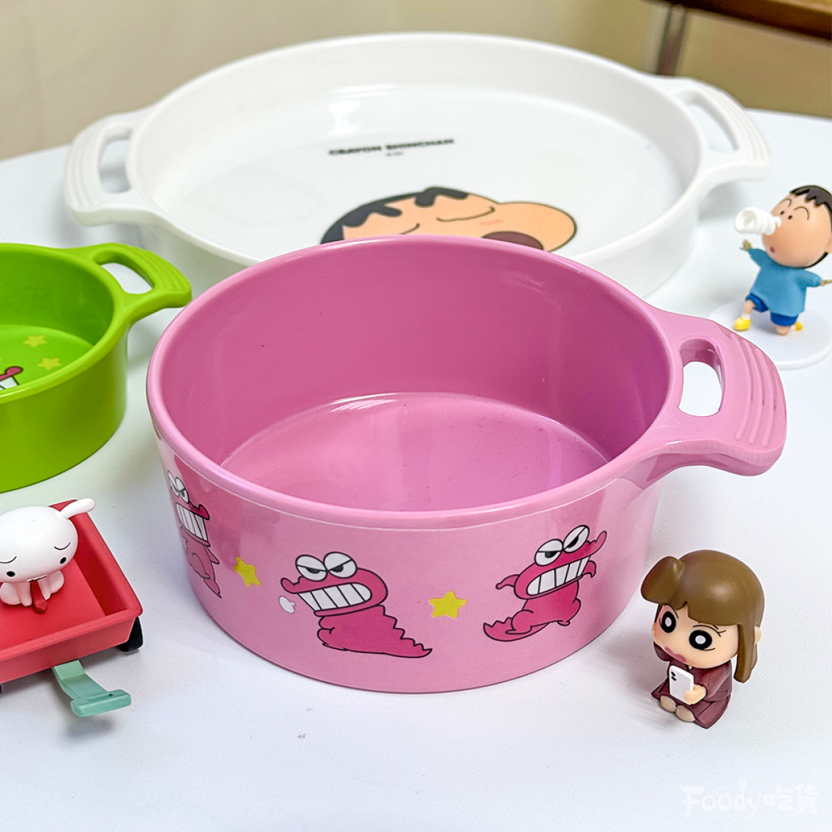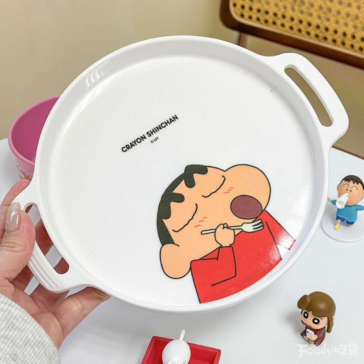 ▼蠟筆小新系列餐盤的尺寸剛剛好,適合放置各種美味佳餚。尤其是這款餐盤,特別採用了雙耳設計,讓你在使用時更加方便。無論是拿取或搬動,都能輕鬆自如。