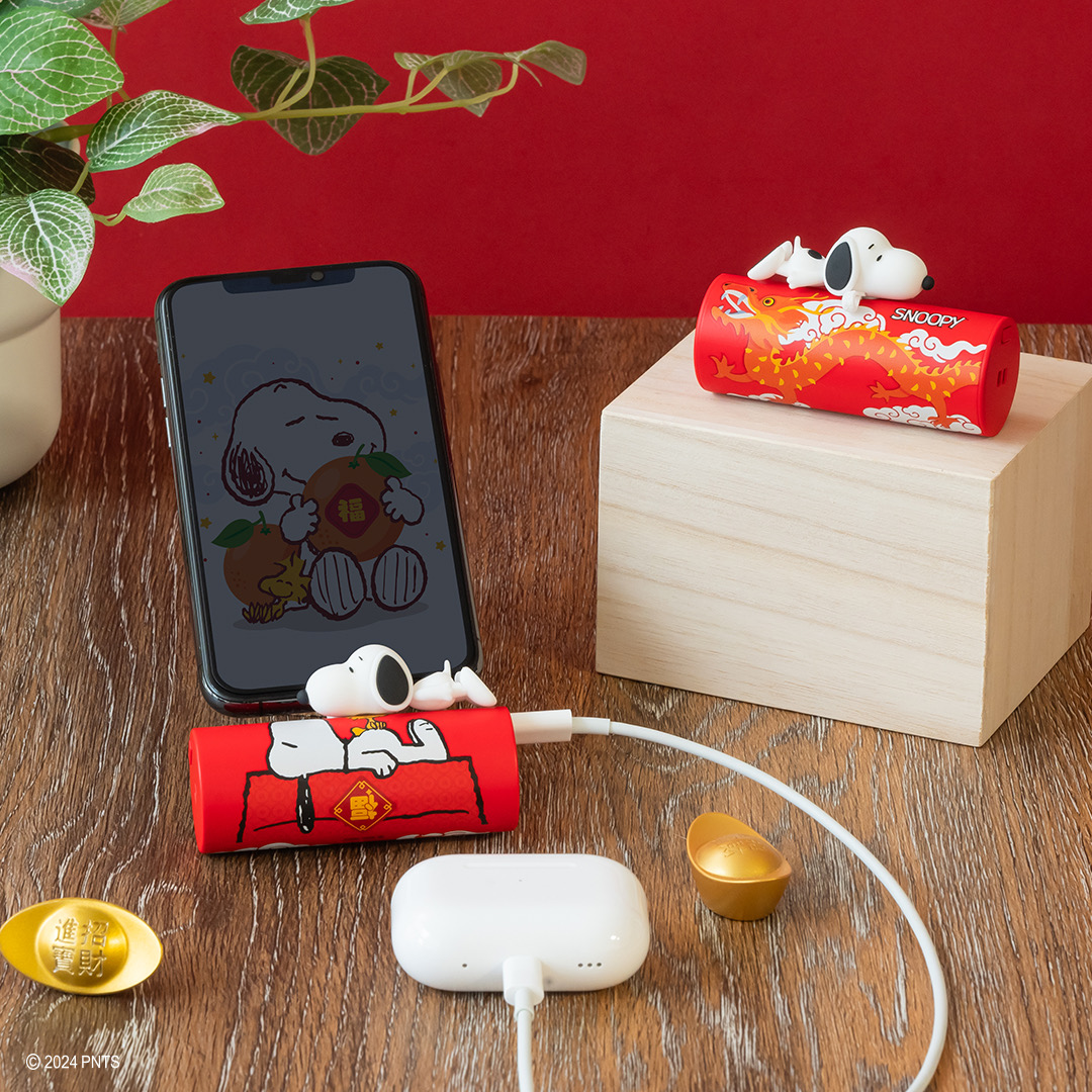 ▼「史努比龍年智慧快充口袋行動電源」是PEANUTS正式授權,經典史努比龍年紀念圖案設計,在新年時節超級應景!最大輸出功率同樣為20W,5000mAh 大電芯容量;直插式行動電源,隨插即充,無線纏繞免帶線;台灣設計製造,很值得入手~