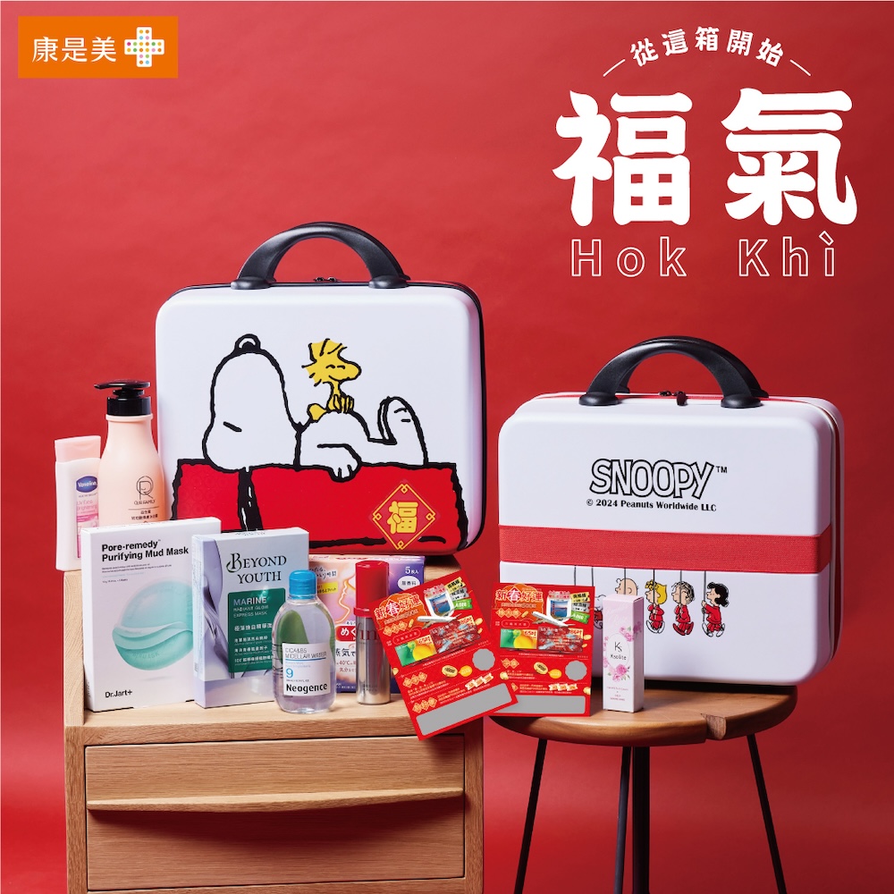 ▼康是美的「新春福箱」則有兩款,手提福箱為史努比硬盒造型,售價為699元,集結史努比和人氣角色,展現新年意象!手提福箱內含1項醫美商品、3項美妝商品以及2張刮刮卡,市價足足超過1,800元~
