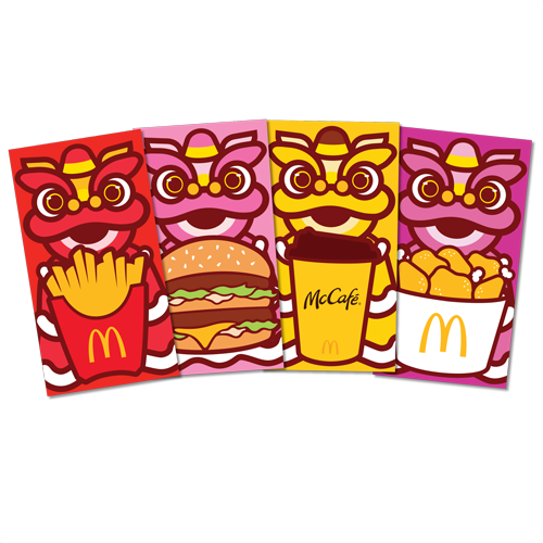 ▼此外,即日起購買任何招財福堡系列套餐,還能獲贈一套四款麥當勞醒獅紅包袋。紅包袋上有象徵福氣的醒獅圖案,還有薯條、麥炸雞、巨無霸、McCafé咖啡等麥當勞經典美食。紅包袋數量有限,贈完為止,好機會別錯過!