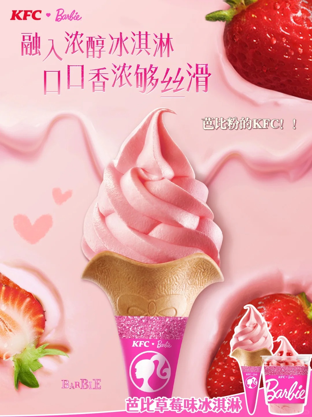 芭比與草莓是絕配,肯德基將兩者結合起來,帶來浪漫與美味。酸酸甜甜的草莓滋味,不管是芭比粉絲還是草莓控都不能錯過~