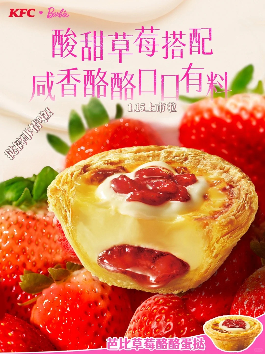 ▼大陸肯德基於1/15日推出「芭比草莓酪酪蛋撻」,以順滑香醇的奶酪醬搭配草莓醬,還有濃郁酸甜的草莓流心,粉嫩視覺簡直令人少女心大噴發。