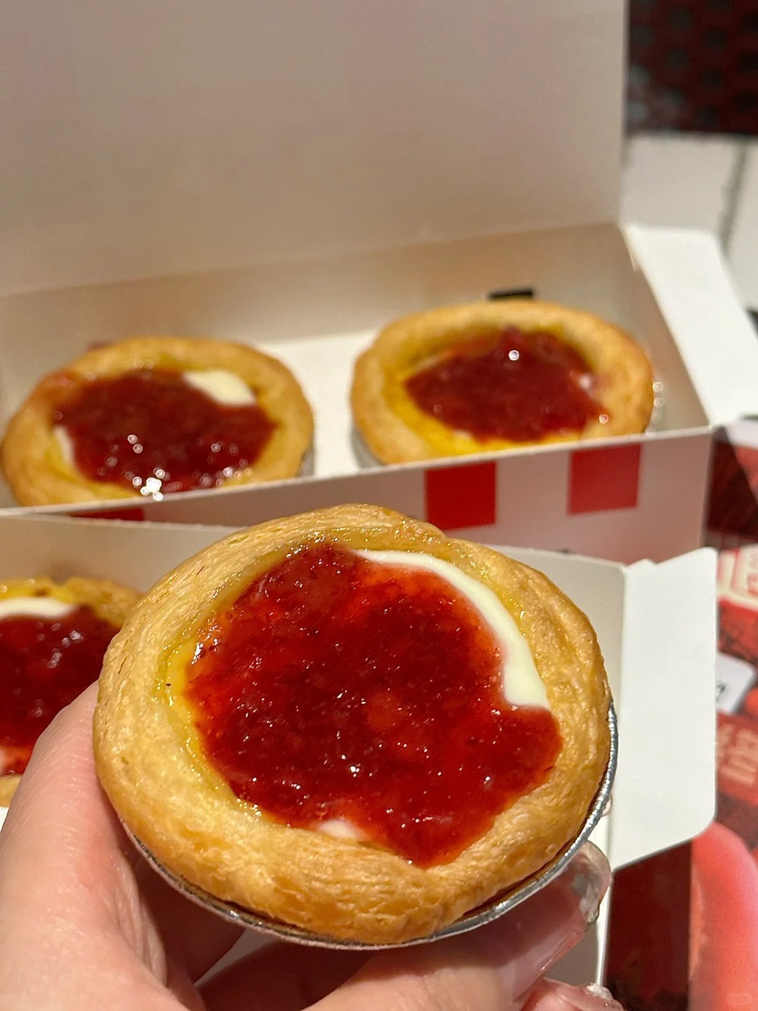 【海外】粉紅旋風! 肯德基最新口味「草莓酪酪蛋撻」 爆出奶酪醬流心太美味!