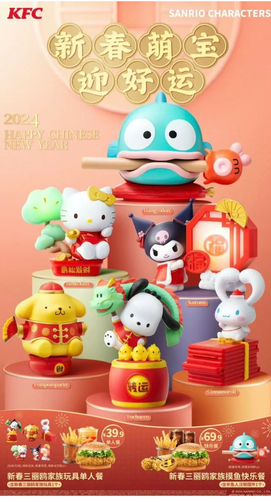 2024年到來,肯德基與三麗鷗大明星們聯手,跟大家一起迎好運。這些創意玩具太可愛,好想全部蒐集~