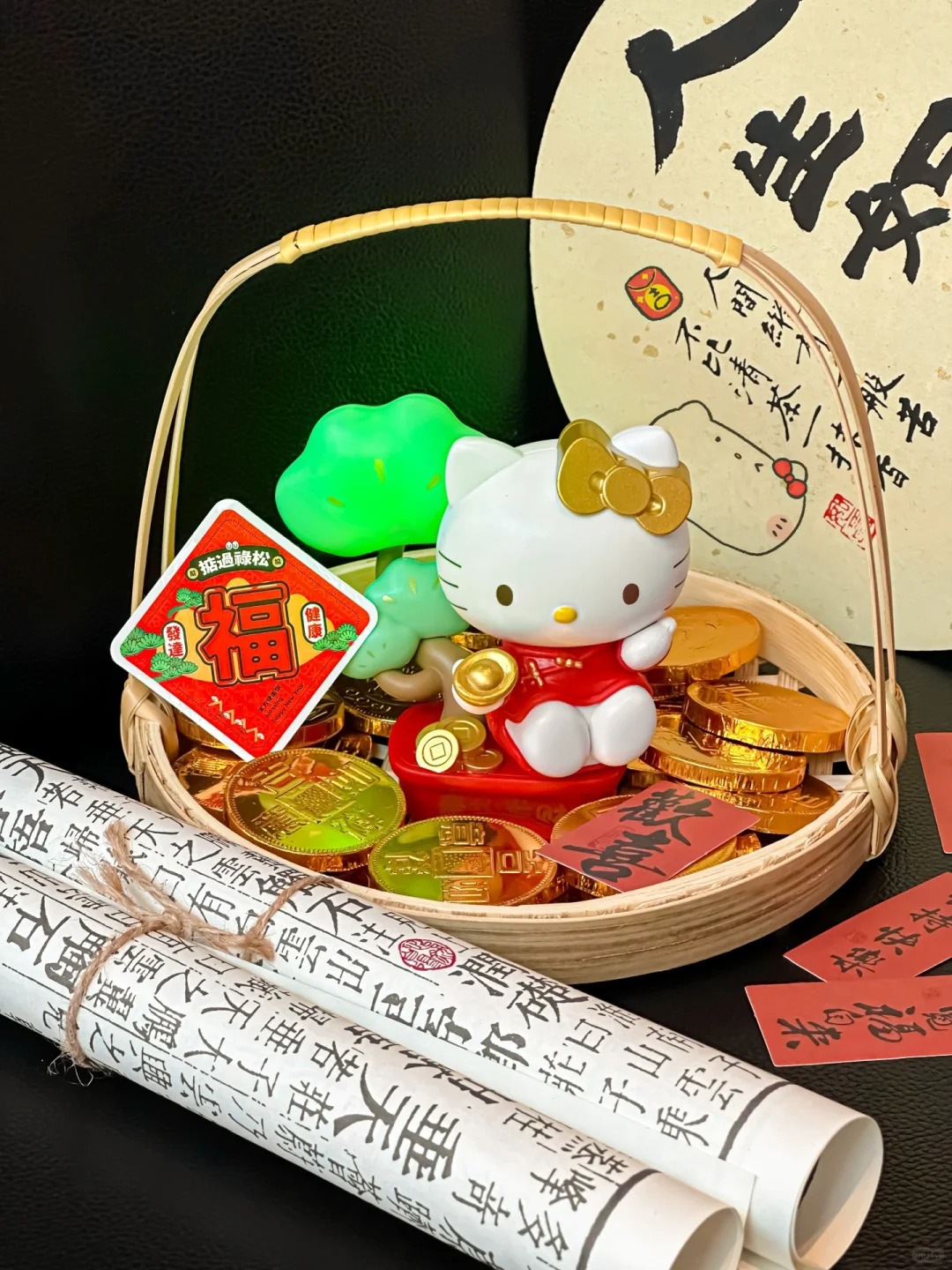▼三麗鷗大明星們都穿上喜慶的服裝,Kitty手拿金元寶;庫洛米抱著福字燈籠、布丁狗坐在聚寶盆上;帕恰狗則敲鼓舞龍,完美應和新年氣氛,讓人只看就覺得喜氣洋洋。最有趣的是大耳狗,坐在一疊紅包上表情乖巧,讓人愛不釋手。