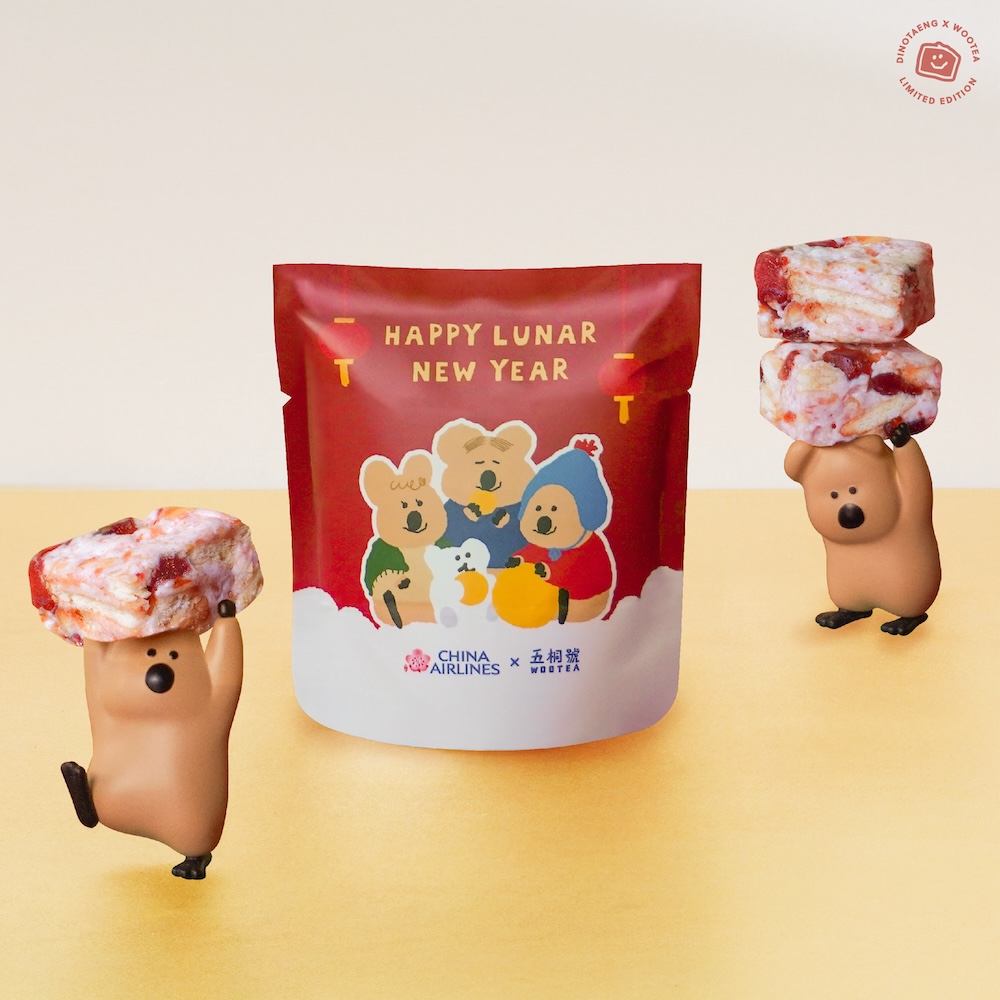 ▼此外,中華航空還為農曆春節特別準備了驚喜。從小年夜(2月8日)到大年初一(2月10日),由台灣出發的旅客都可以享受到「Quokka闔家團圓棉花糖Q餅」,這款特別版的棉花糖Q餅充滿了濃厚的年節氛圍,上面有著Quokka矮袋鼠全家福的可愛圖案,讓遠在異鄉的遊子也能感受到家的溫暖。這款甜點內含超人氣的棉花糖Q餅,口感奶香濃郁,融合了蔓越莓果乾的酸甜,讓人回味無窮。