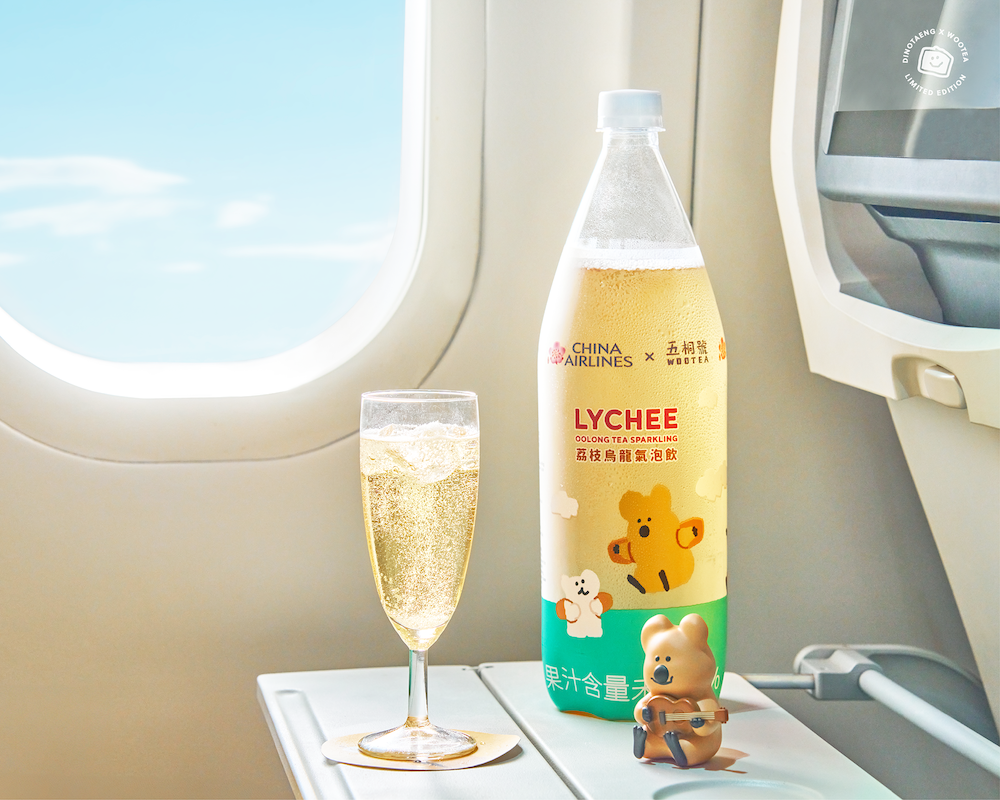 ▼這波機上甜品包括「五桐號草莓蜜香紅茶達克瓦茲」、「五桐號鐵觀音蜜桃馬卡龍」、「五桐號靜岡抹茶瑪德蓮」、「五桐號烏龍茶巧克力酥餅」等。以果香搭配經典茶香,融入異國甜點中,甚至還有「烏龍綠茶凍冰淇淋」!在香甜滋味之餘又有茶香環繞,讓人想到五桐號的飲品!機上供應的飲品也換上新風味,香甜順口的「五桐號荔枝烏龍氣泡飲」讓人想一杯接著一杯!而且全都有短尾袋鼠的包裝陪伴,會不會捨不得拆來吃呀~