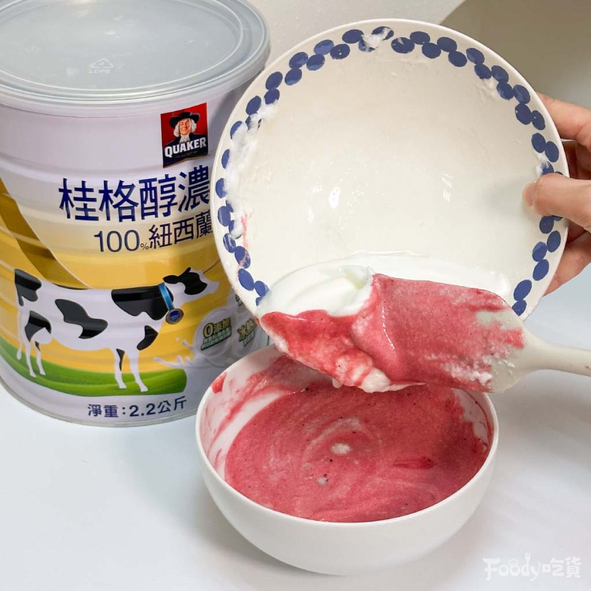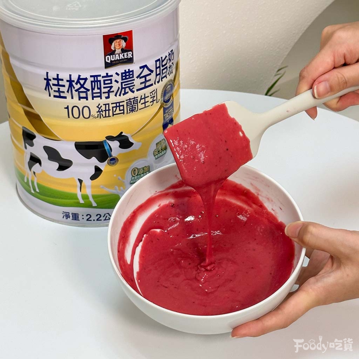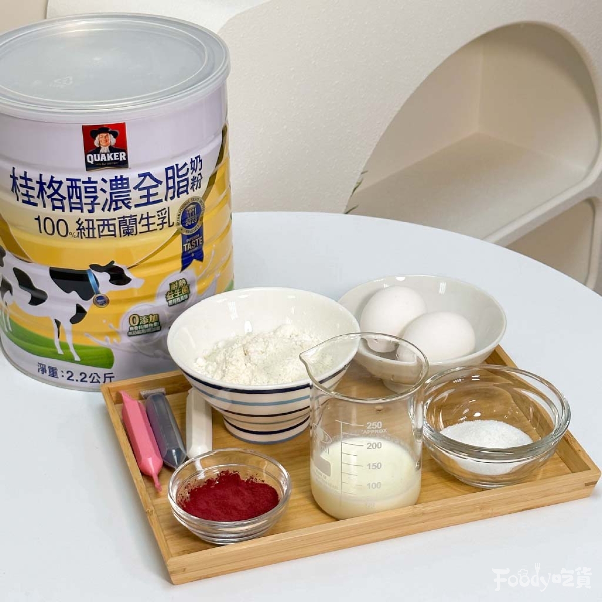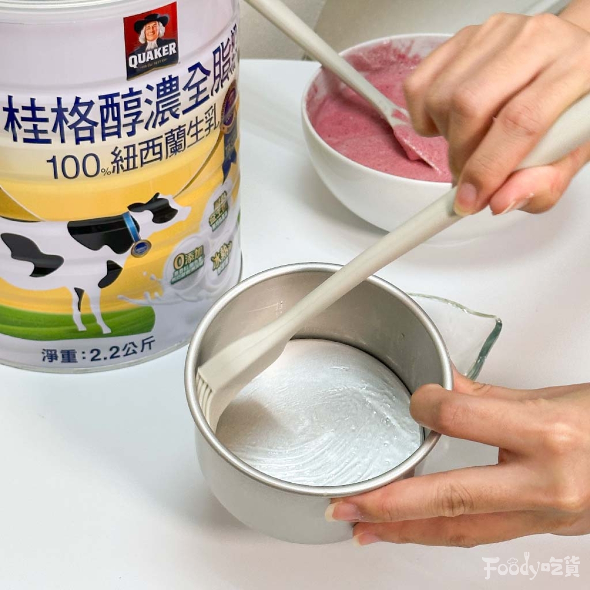 ▼拿出「桂格醇濃全脂奶粉」,可別以為它只能泡牛奶,做甜點也是超實用!隨時可拿來沖泡,而且冰沖就像鮮奶,做甜點時奶香更加濃郁,同時還能全憑個人喜好調整奶香的濃淡程度!不只為口感加分,還能提供優質奶蛋白。將沖泡好的桂格醇濃全脂奶粉,加入蛋黃中攪拌,打到顏色稍稍變白。這時就能聞到奶香散發,讓人超期待成品的美好滋味~