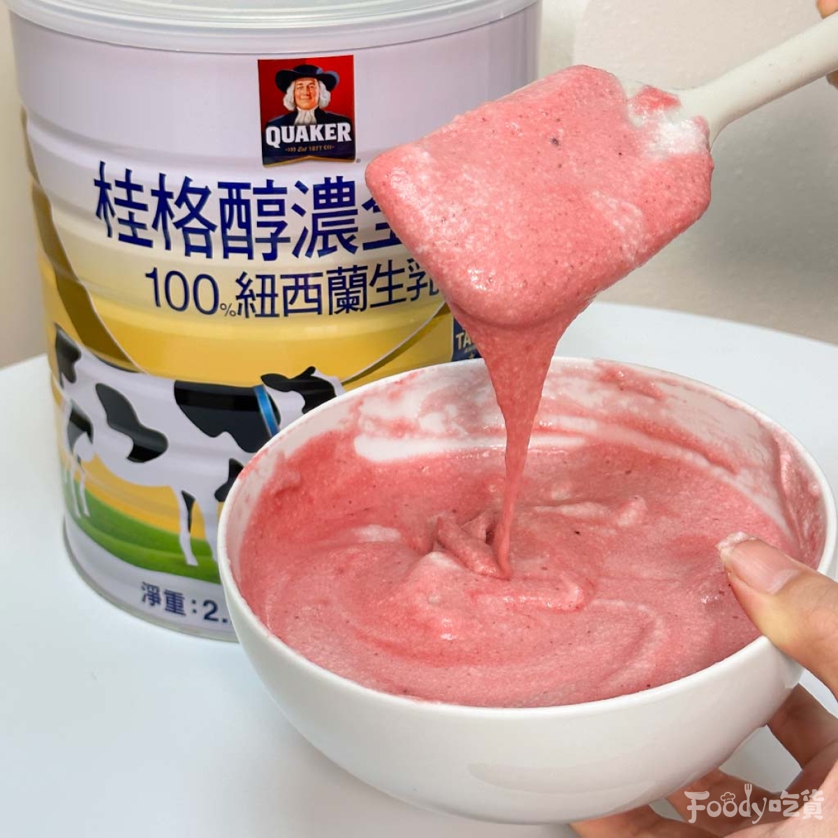 ▼怎麼樣,製作卡娜赫拉的小動物粉紅兔兔厚鬆餅是不是沒有想像中那麼難?品嚐一下,濃郁的奶香好誘人,因為我們加入了「桂格醇濃全脂奶粉」,這款奶粉使用100%紐西蘭生乳、純淨0添加,無香料、無色素、無防腐劑、無額外添加糖,還榮獲號稱食品界米其林ITi風味獎章,香氣超濃郁,能讓鬆餅鬆軟程度UPUP,吃起來更有層次感。各大超市、量販店或是網購都有販售,能夠輕鬆取得,有了它,烘焙新手也能做出不輸鬆餅名店的甜點!
