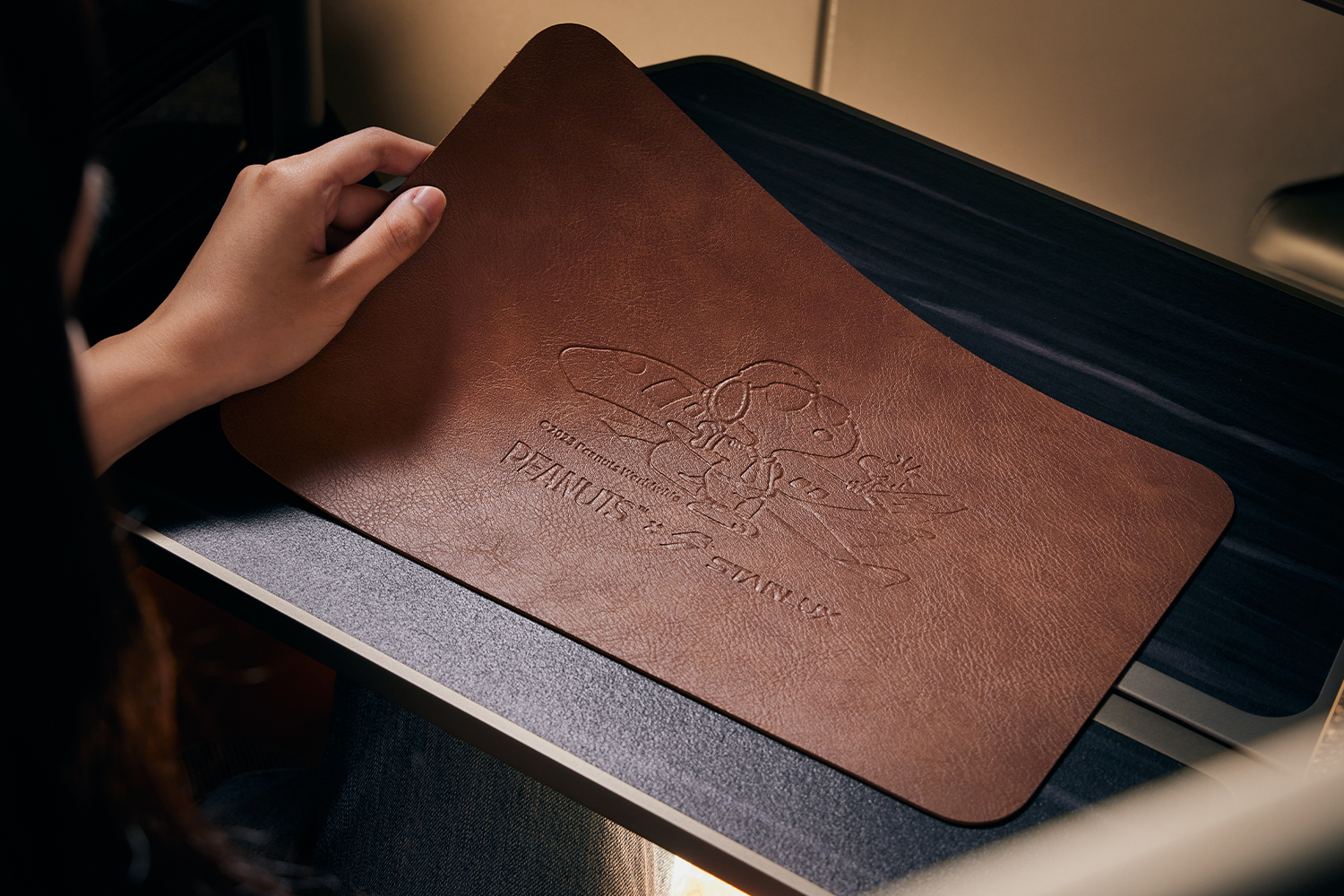 ▼禮盒還附帶一個精美的「皮革壓印史努比餐墊」和一個「專屬聯名送禮提袋」,無疑增添了整個禮盒的高級感和特色。