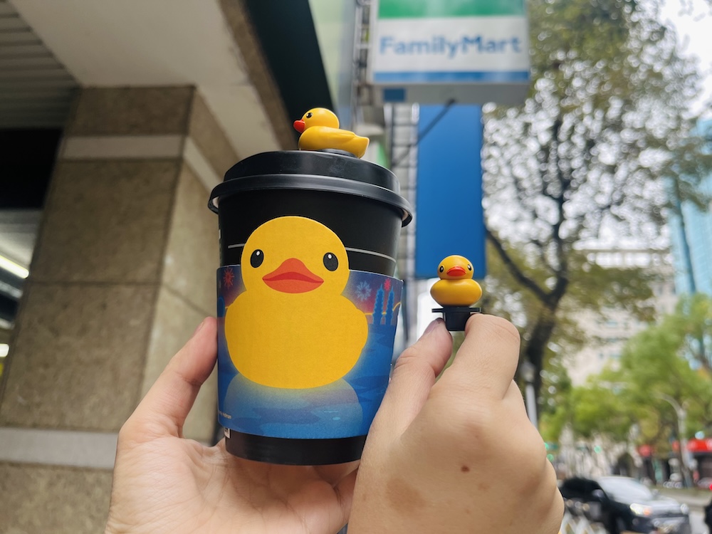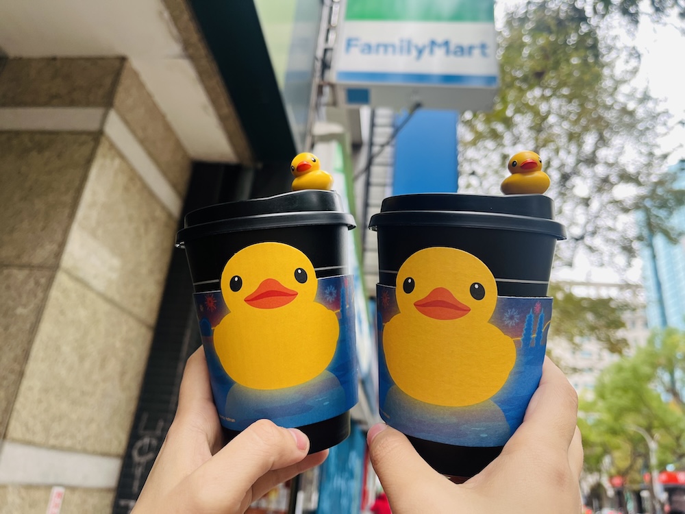 ▼此外,全家還同時推出了黃色小鴨子杯套,杯套的特別造型將小鴨子在愛河上游泳的可愛形象生動呈現。在1月24日至2月25日期間,只需購買全家的Let's Café或私品茶的熱飲任何一杯,即可免費贈送一個杯套,跟小鴨杯塞配在一起真的超級有趣!