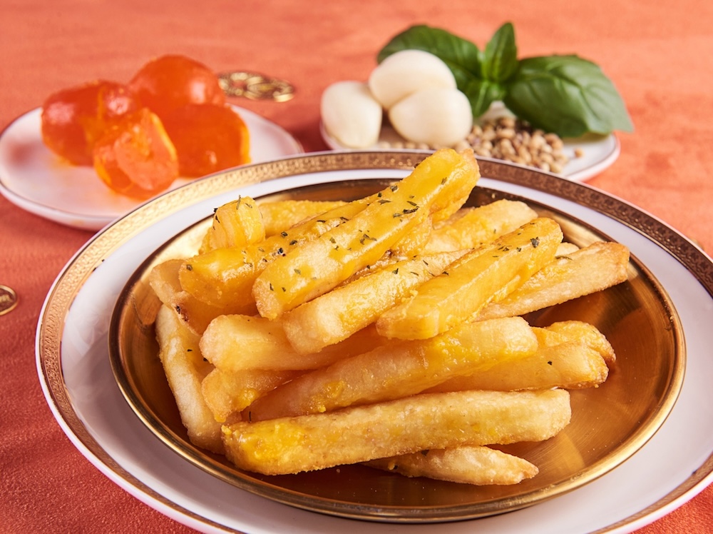 ▼為了搭配這道美味的「富貴開運金沙雞」,肯德基還特別推出了「金沙薯條」。薯條同樣淋上濃郁的金沙醬,讓你在咬下的一瞬間,濃郁的金沙醬就會爆發出來,讓你停不下來一口接一口!金沙薯條不僅味道美味,同樣帶有祝福,這樣金光閃閃的套餐太適合年初品嚐啦!